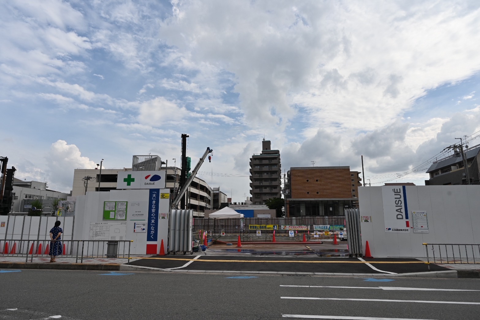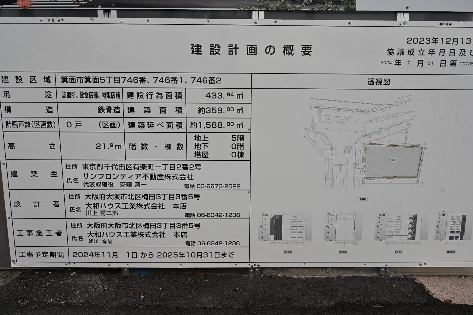 すぐ目の前には、建て替え工事が進む(仮称)みのおサンプラザ1号があって