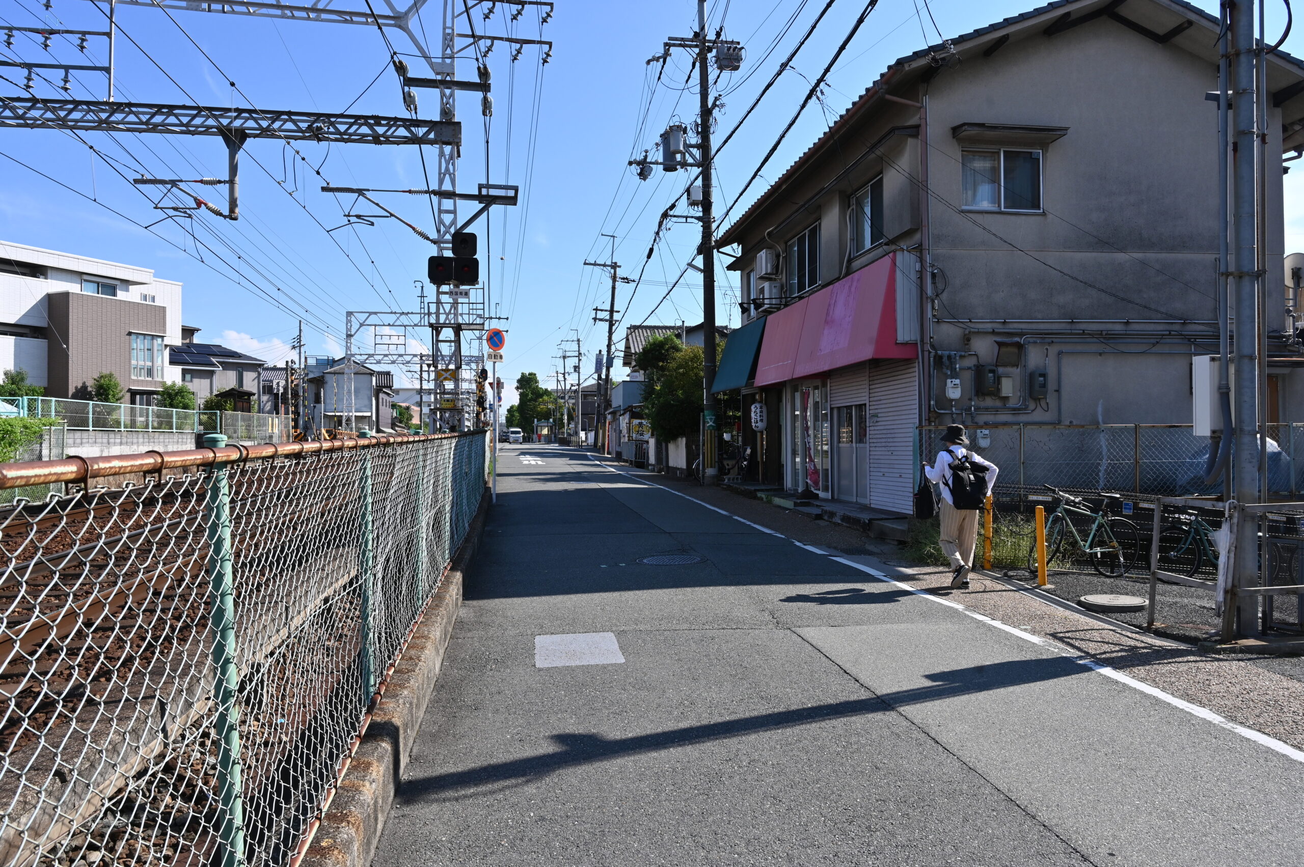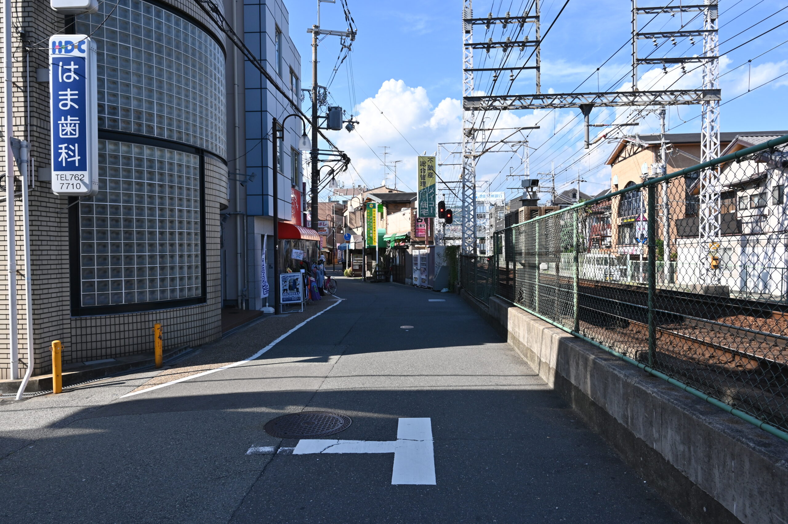 ここは石橋前池公園の近くなんですが、そのまま阪急の線路沿いに石橋駅方面に北上します。