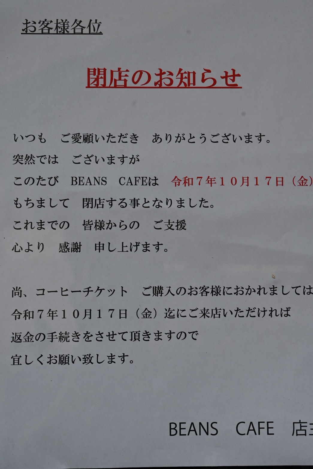 池田駅前にあるステーションN1階のBeans cafe’が10/17(金)で閉店するみたい。