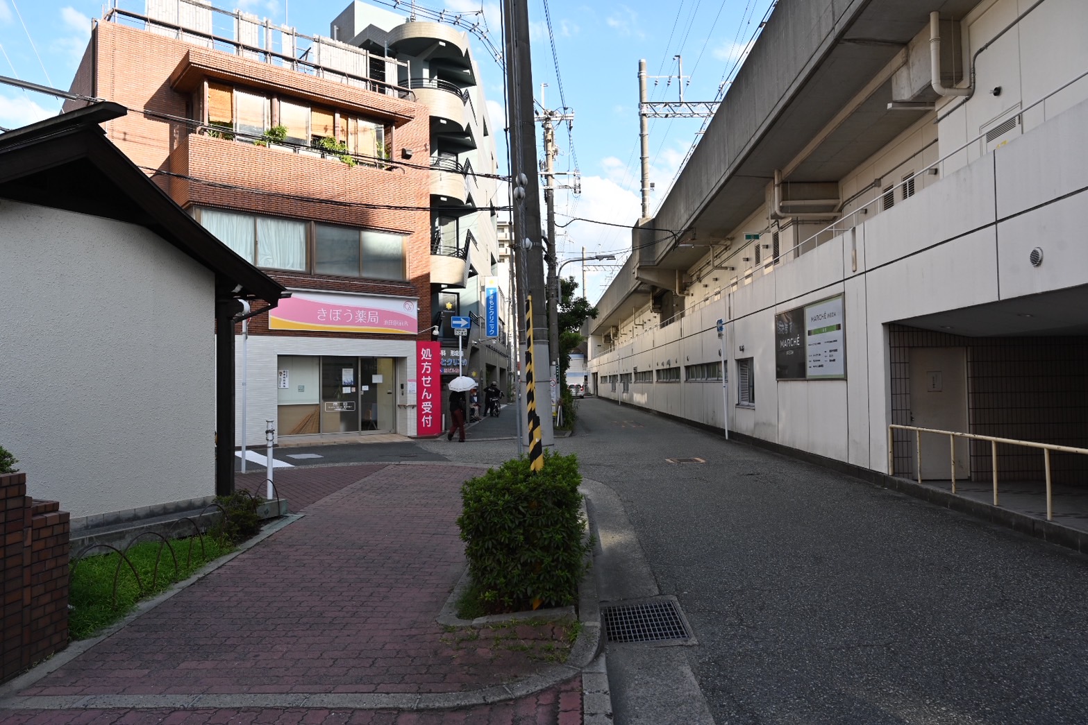 ステーションNを阪急の線路沿いに石橋方面に歩きます。