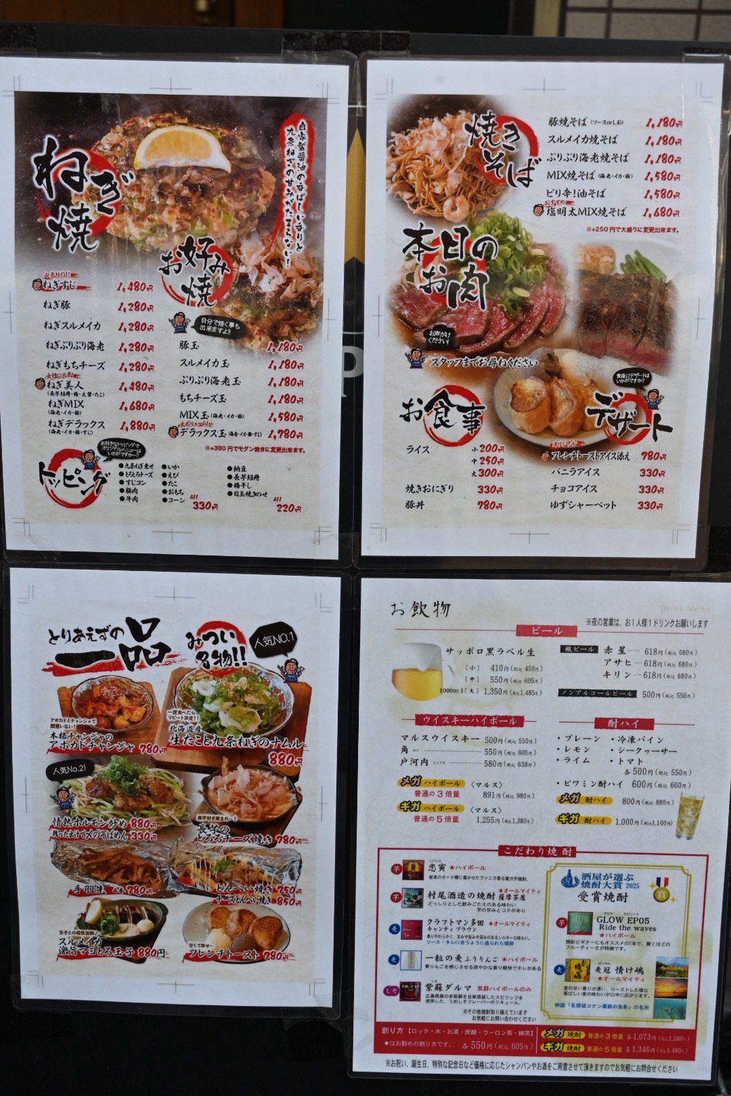ネギ焼き、お好み焼き、焼きそば、寄せ鍋コースなど、鉄板焼きをメインに色んな食事が楽しめそうです。
