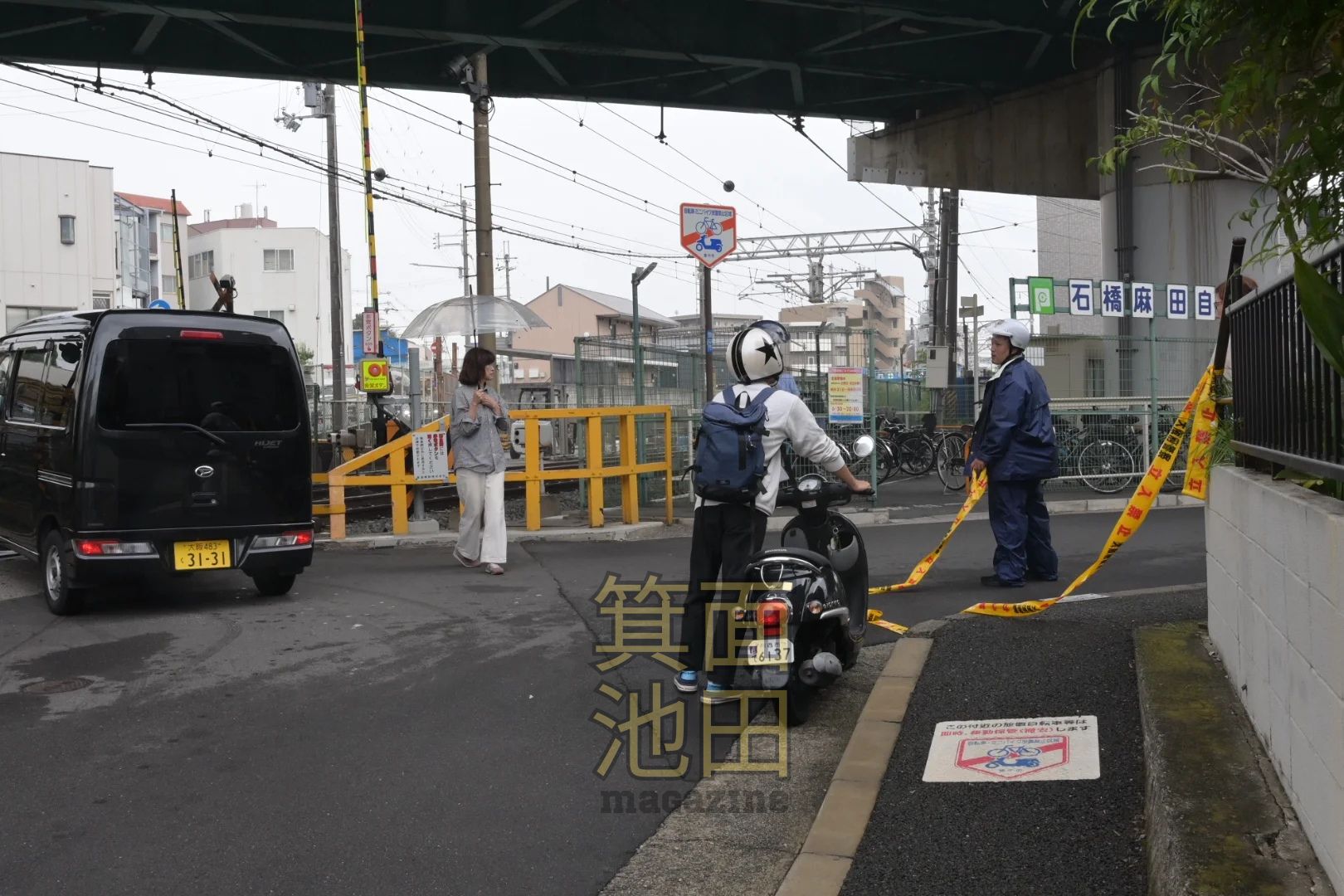 阪急箕面線北東の踏切付近を移動中、ものすごい勢いでパトカーが現地にやってきました。