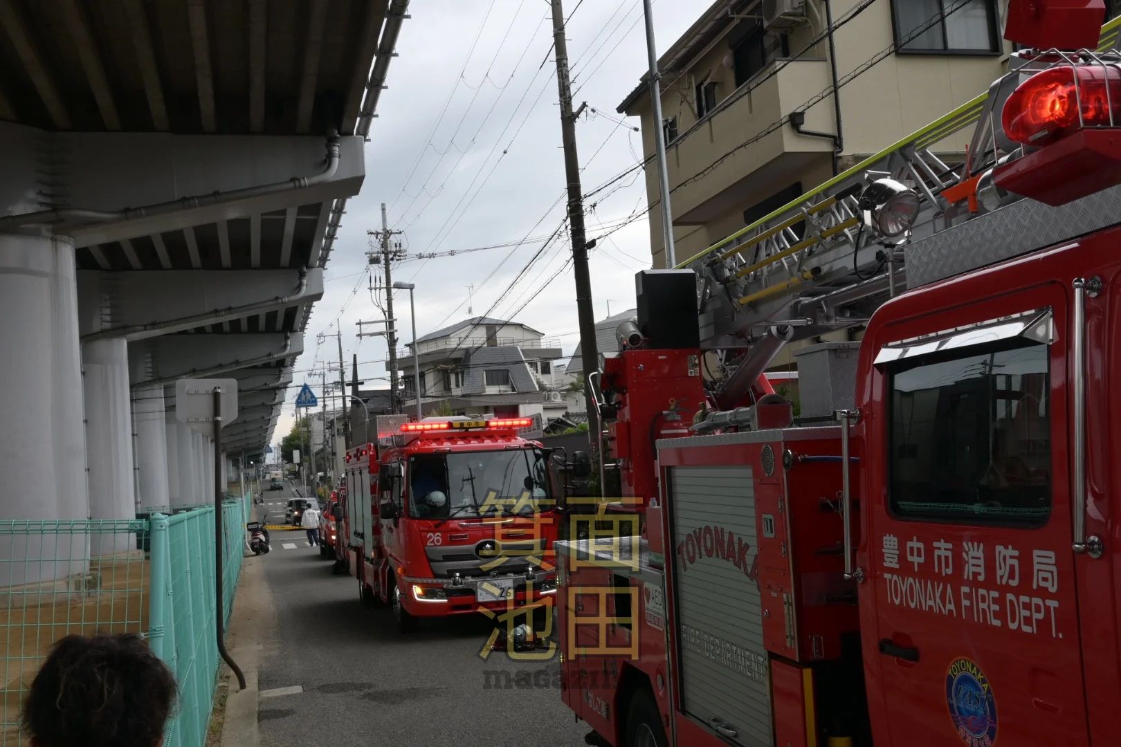 9/26(金)14時27分頃、石橋阪大駅東側の豊中市石橋麻田町5付近の住宅街で火災が発生しました。