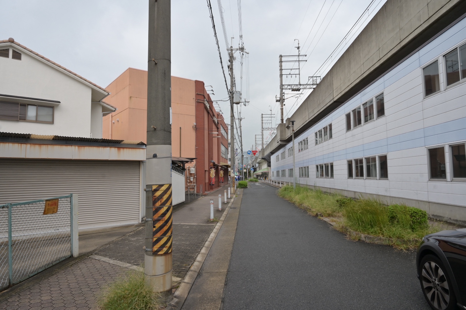 線路沿いに東へ行くと、石橋阪大前駅方面で