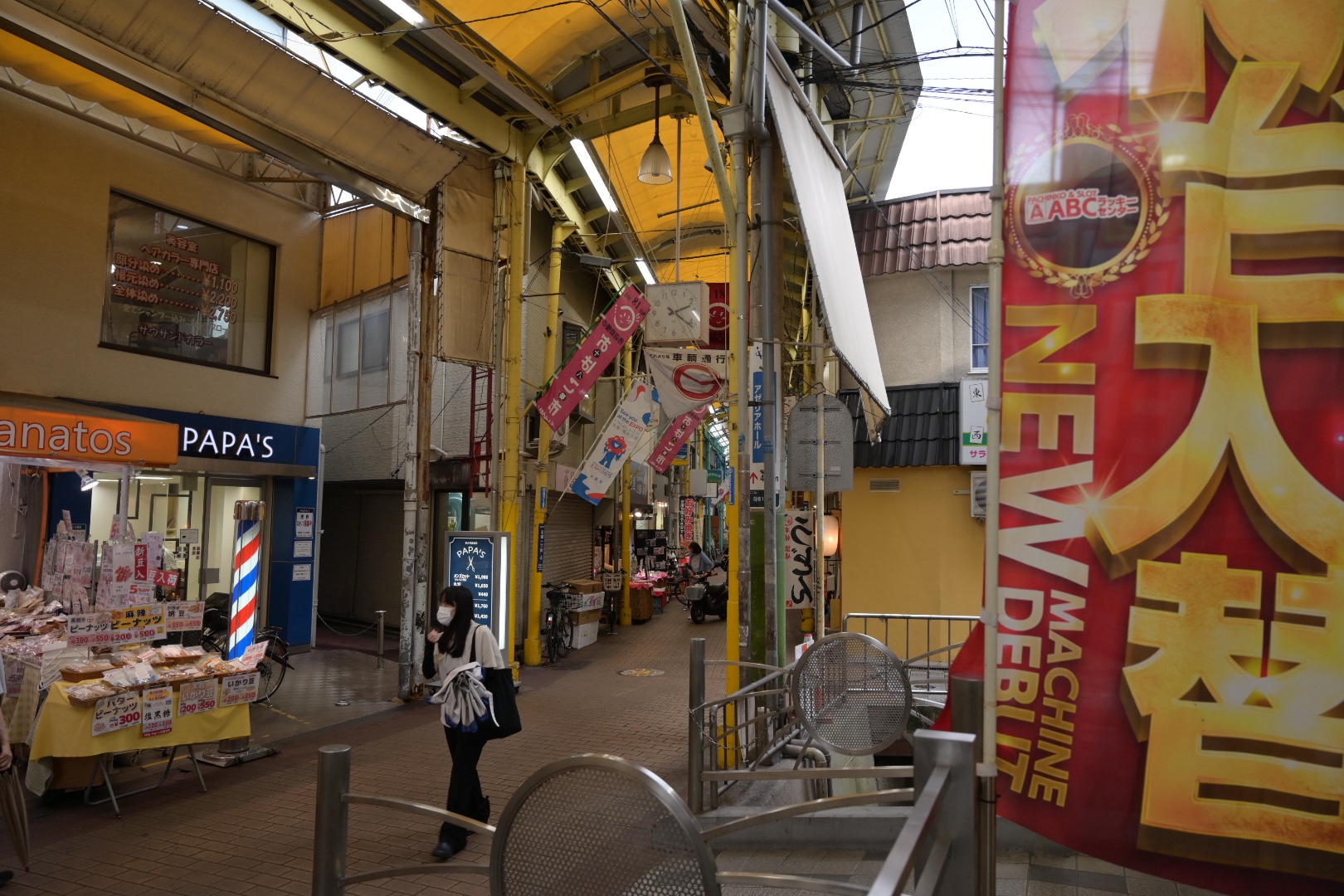 石橋阪大前駅商店街を西に進んで、ABCラッキーセンターの真向かいになります。