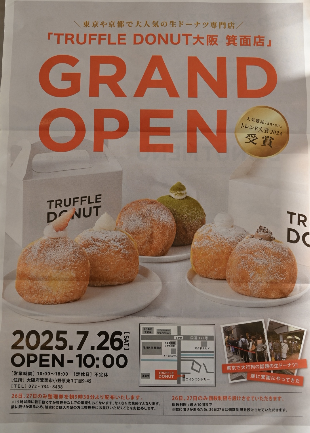 7/26、箕面市小野原にオープンしたTRUFFLE DONUT大阪箕面店のドーナツを食べてみました!