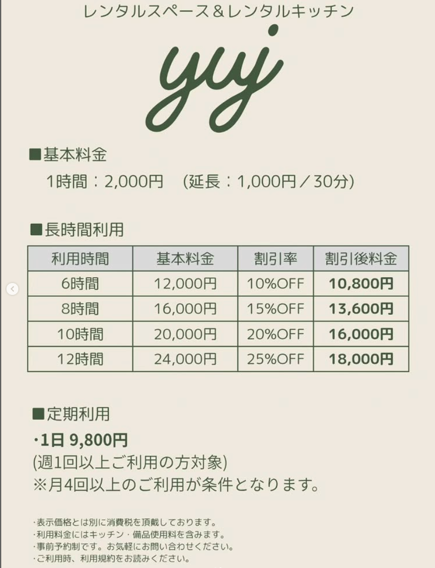 10/1(水)、箕面市粟生外院にyuj(ユジュ)っていうレンタルキッチン&レンタルスペースがオープンがオープンしています!