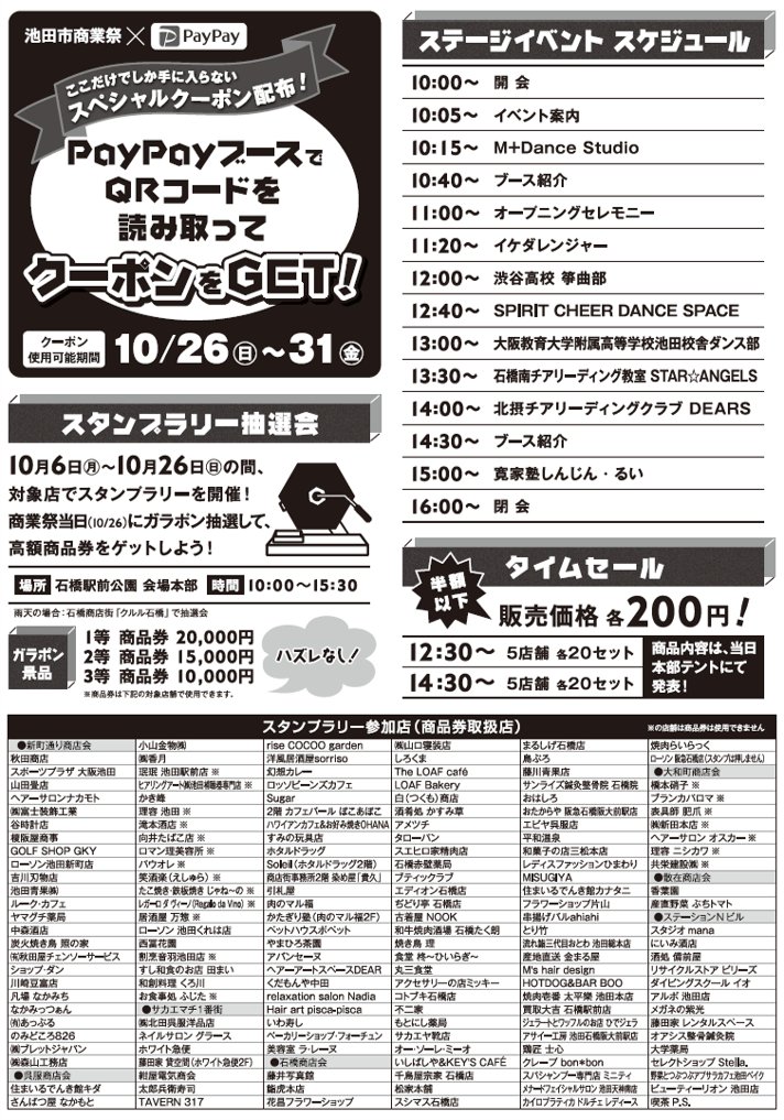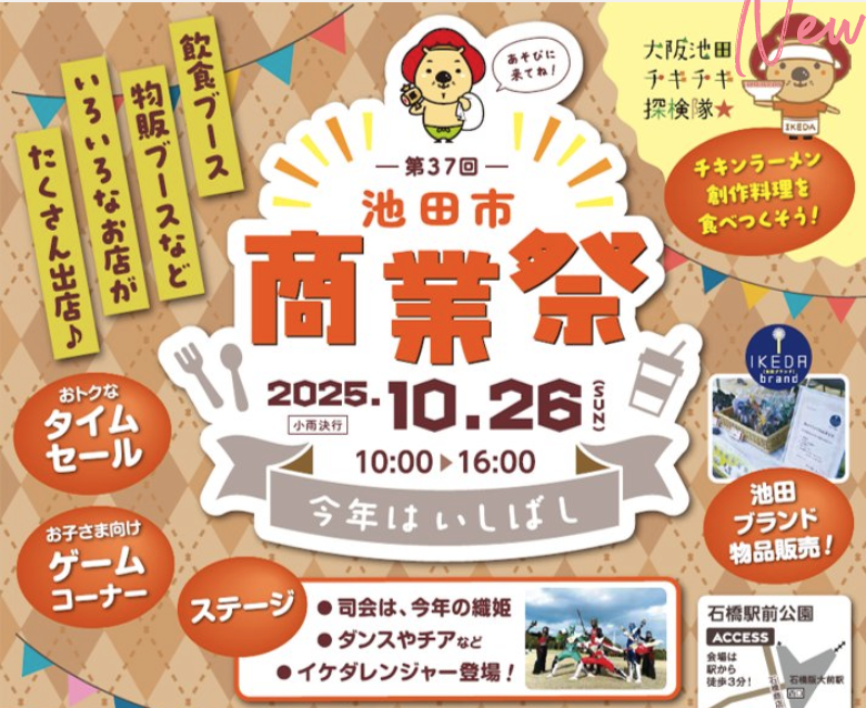 10/26(日)、石橋駅前公園で第37回 池田市商業祭が開催されるようです!