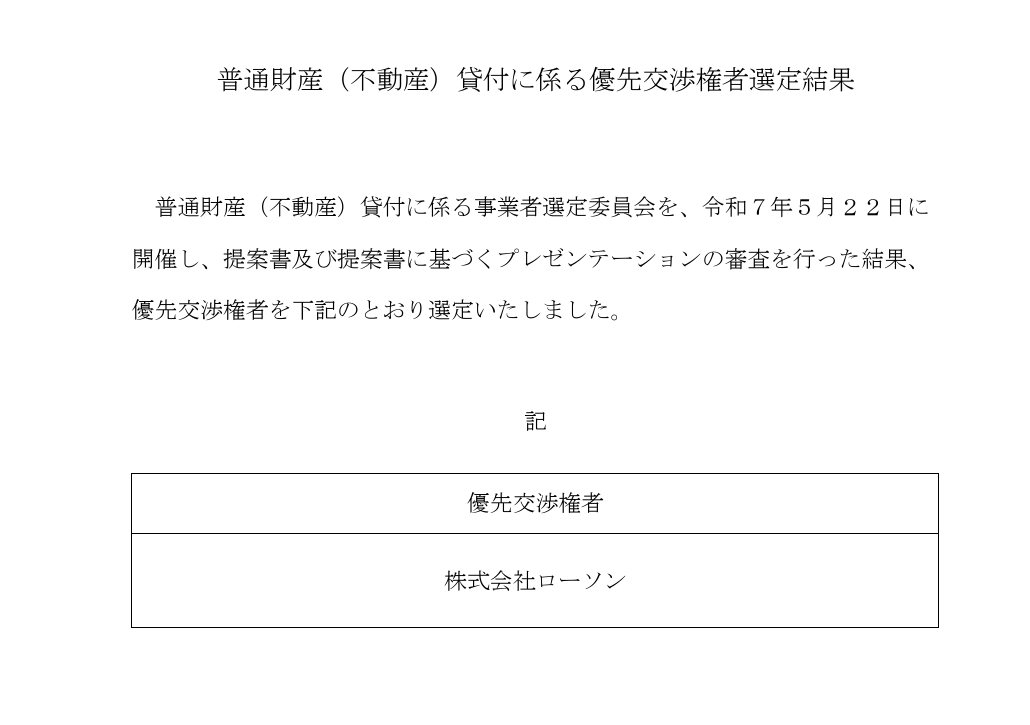 池田市のHPをチェックすると、ローソンが優先交渉権者として発表されていました。