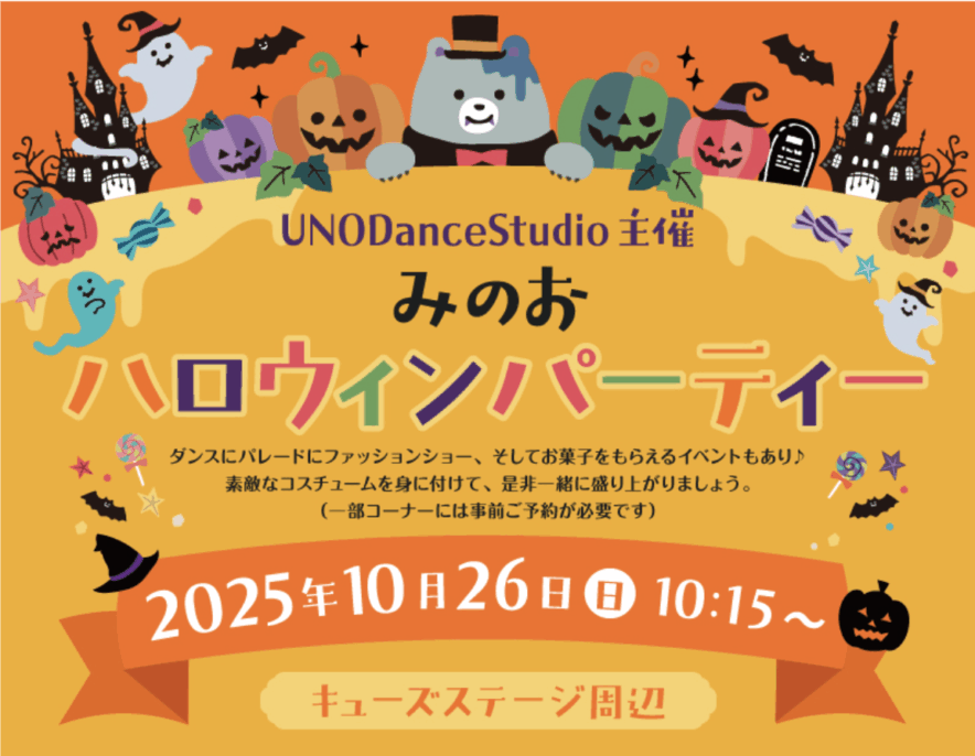 10/26(日)、みのおキューズモールで、みのおハロウィンパーティが開催されるようです!
