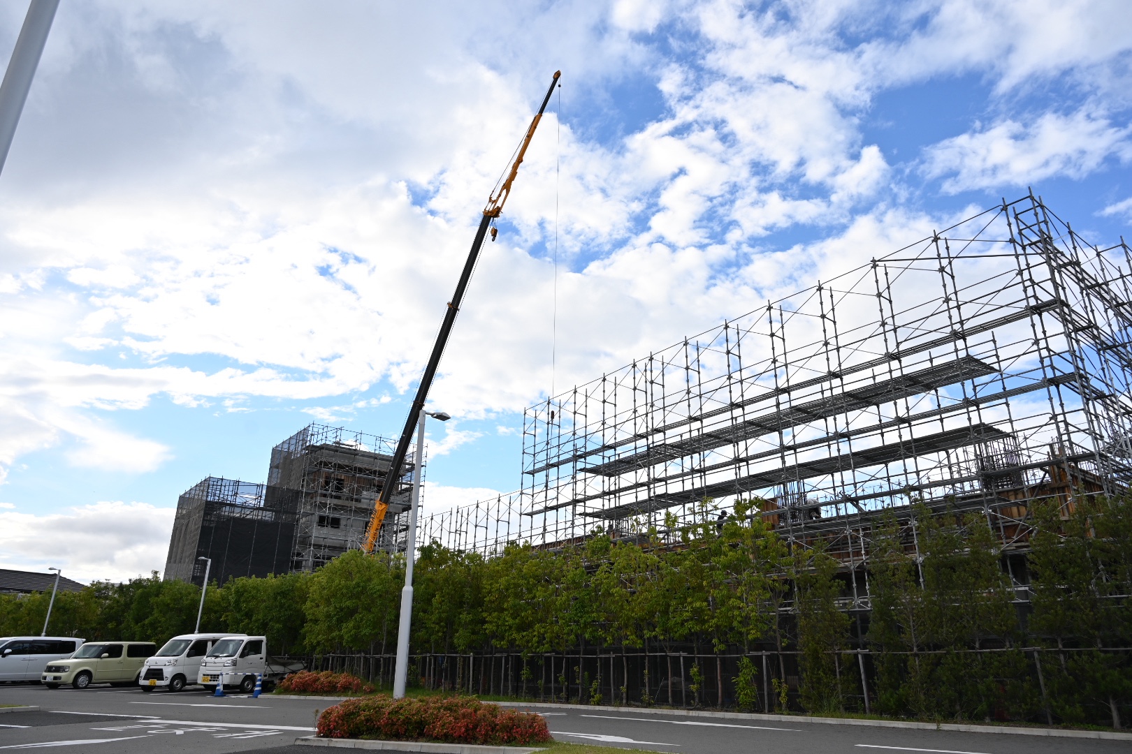 「完成までまだまだかかるで。できてから撮った方がかっこええのに」