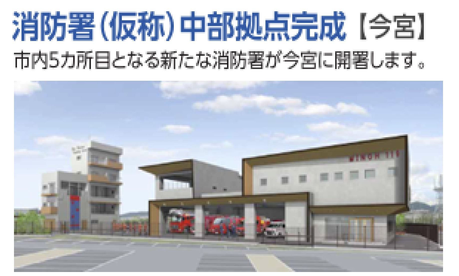 箕面市のHPでも公開されているように、消防署(仮称)中部拠点は2026年4月に完成予定。