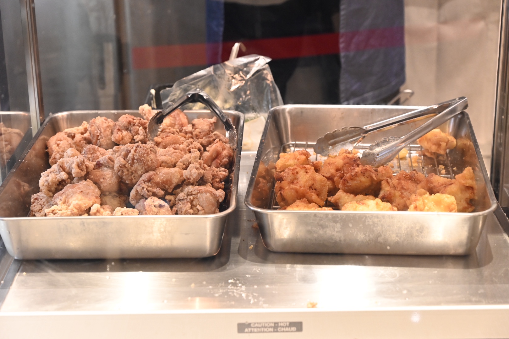 唐揚げととり天は、出来上がったものがその横で保温されています。
