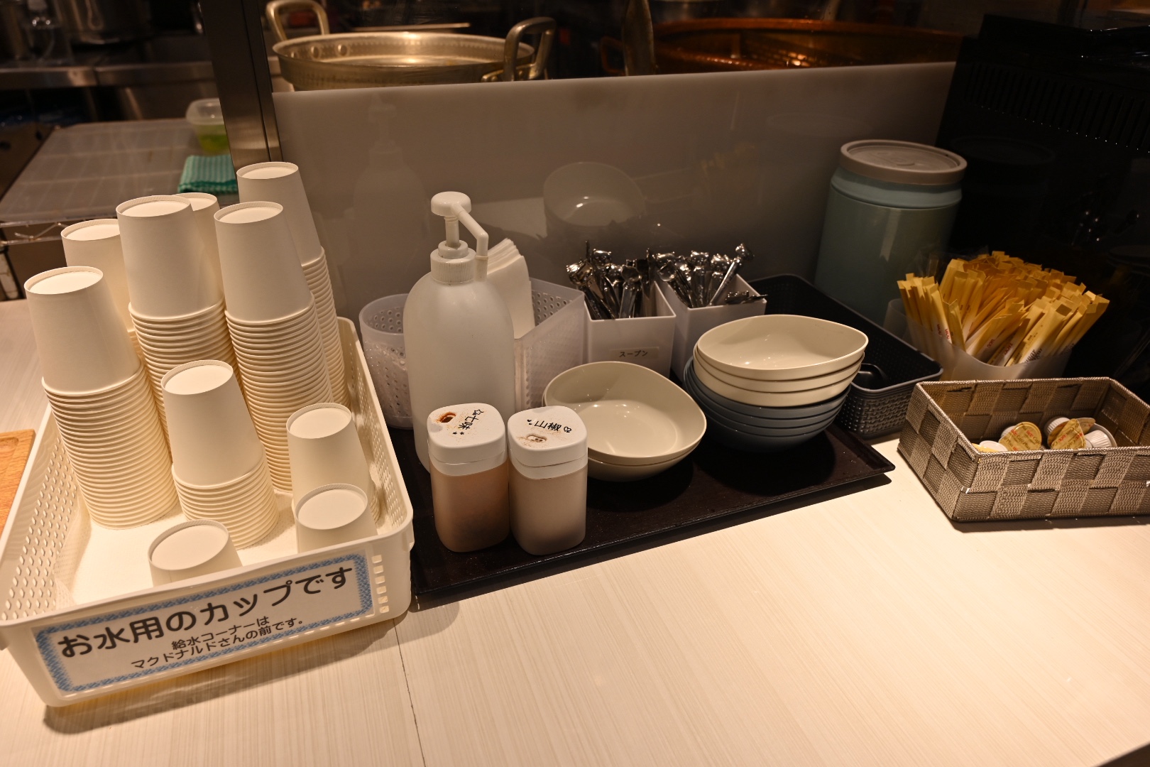 こちらは水のコップや調味料など。