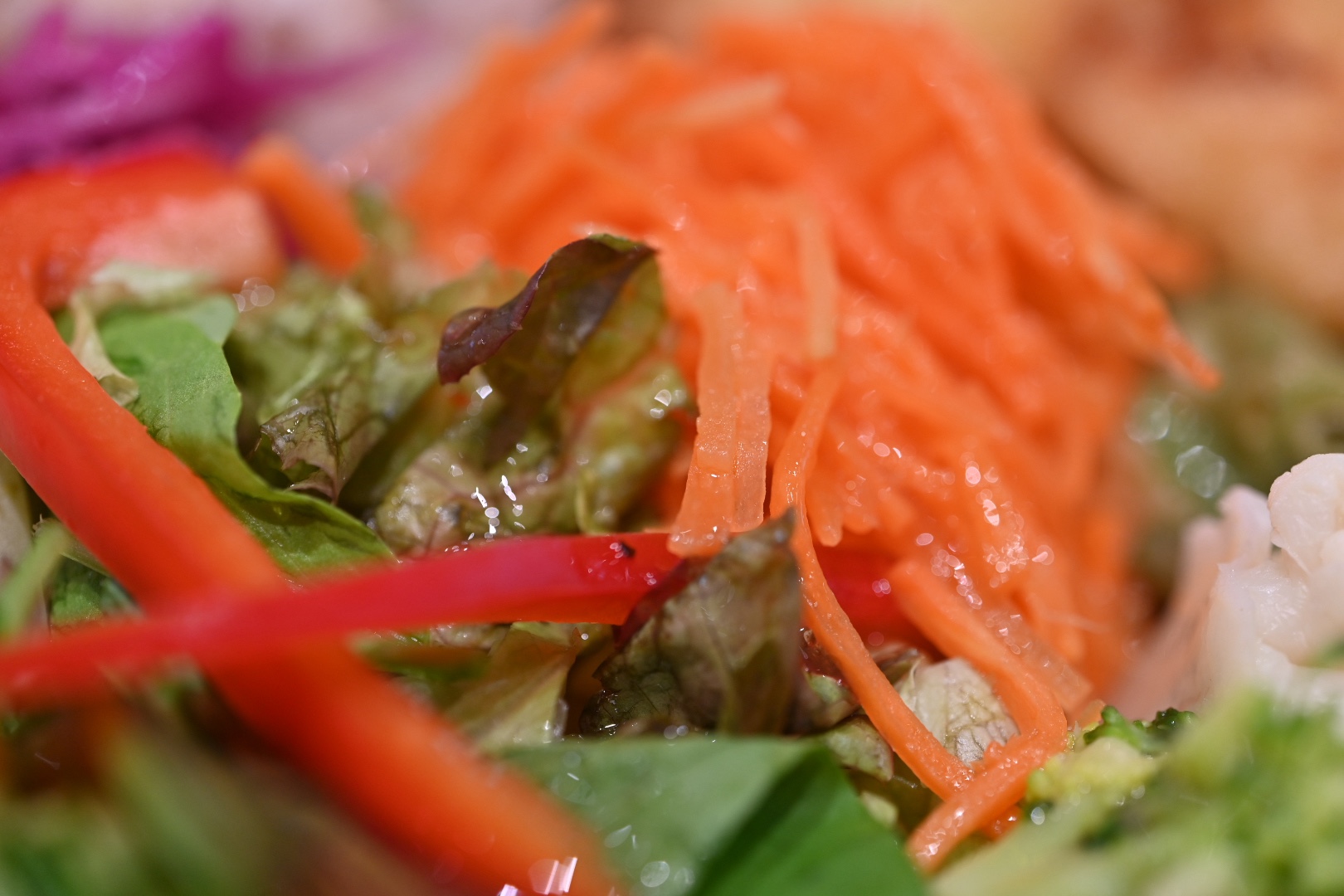 レタス、ベビーリーフ、パプリカ、ブロッコリーちカリフラワーは瑞々しく、人参の塩揉みなど、お野菜がたくさん摂れます。