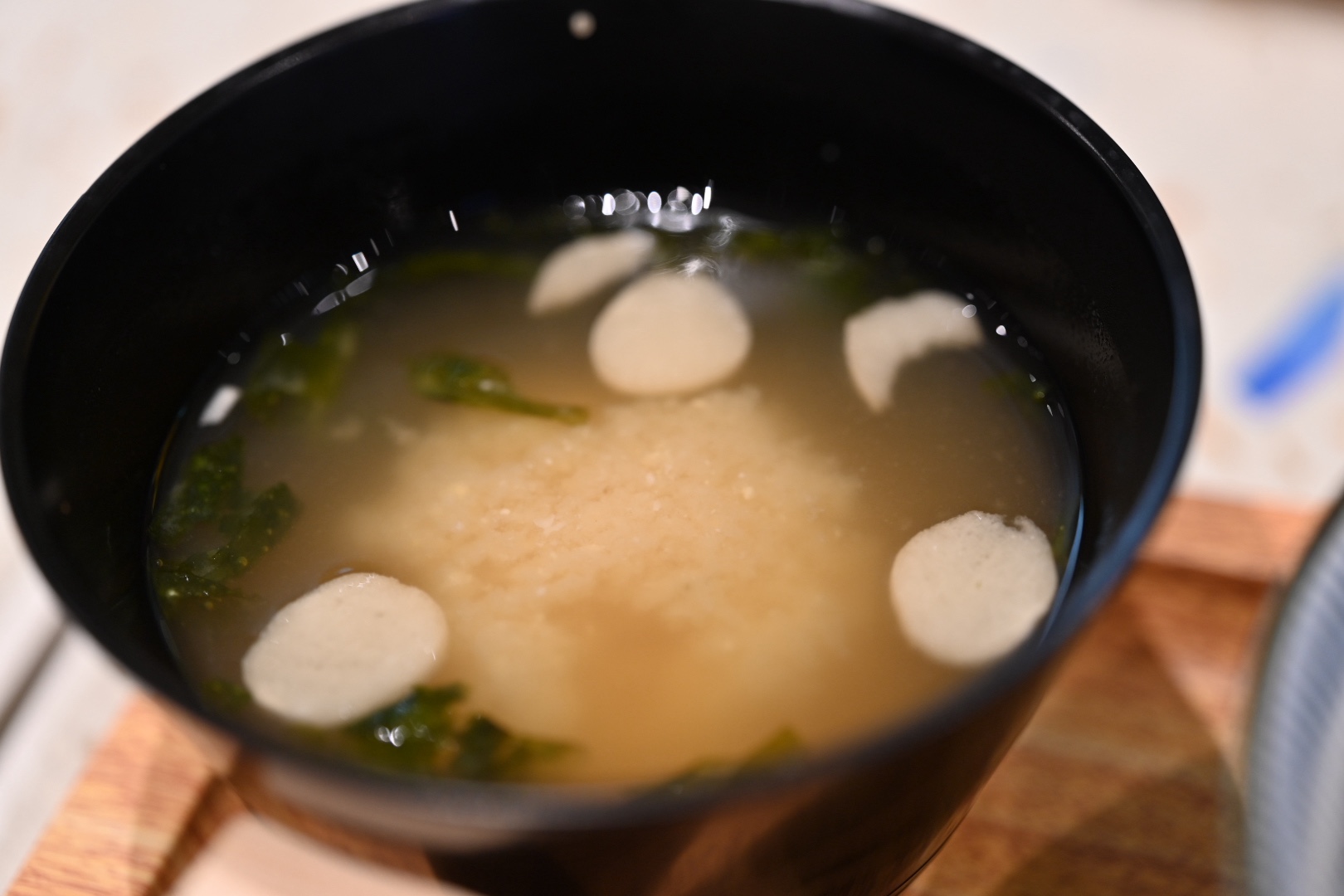 お味噌汁はお麩とワカメが入っていて、少し甘い感じ。
