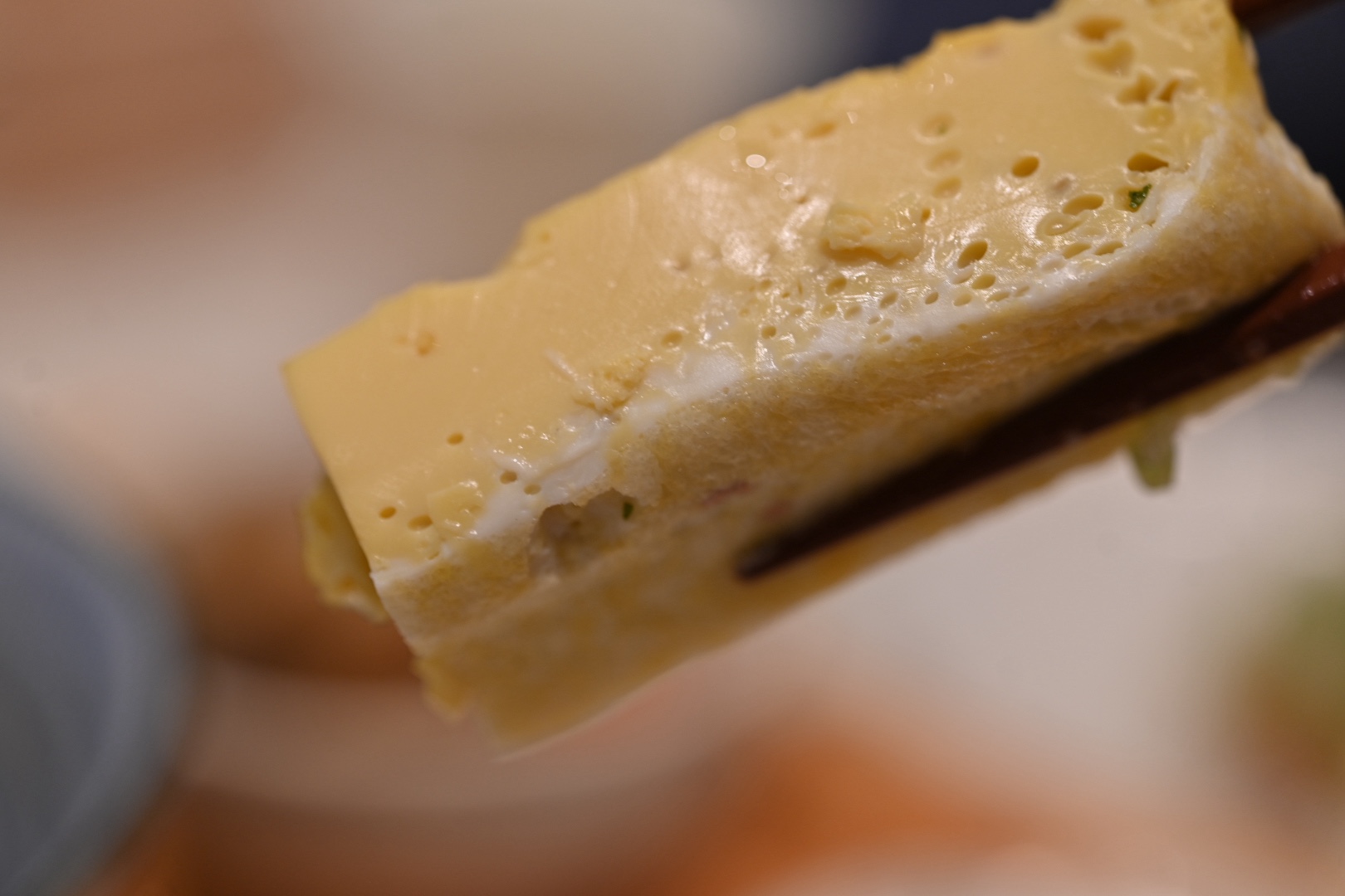 残念ながら、時間が経って余熱で卵が出来上がってしまったのか、だし巻き風味の卵焼きになっていました。