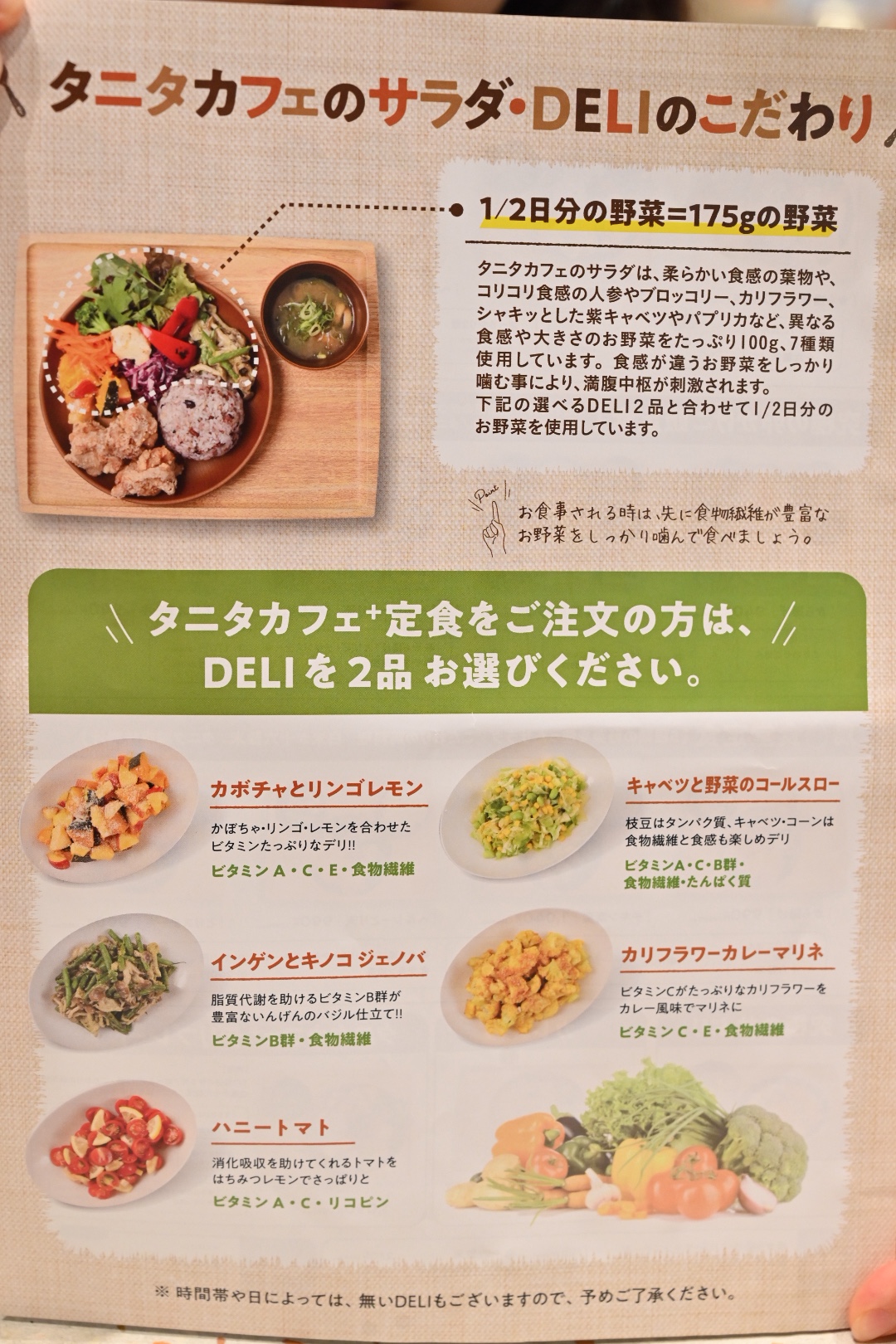 タニタカフェ+定食を注文すると、DELIを2品選べます。