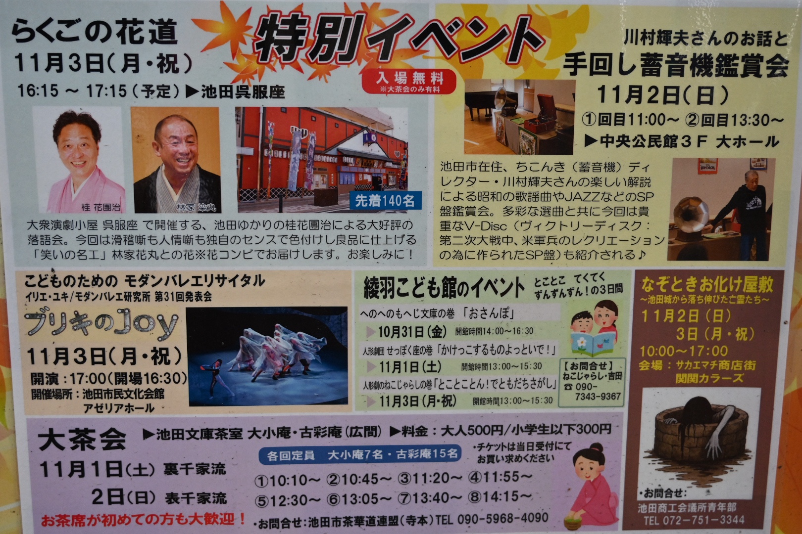 11/1(土)2(日)3(月祝)、池田市内各所を巡る第36回 IKEDA文化DAYが開催されるみたい。