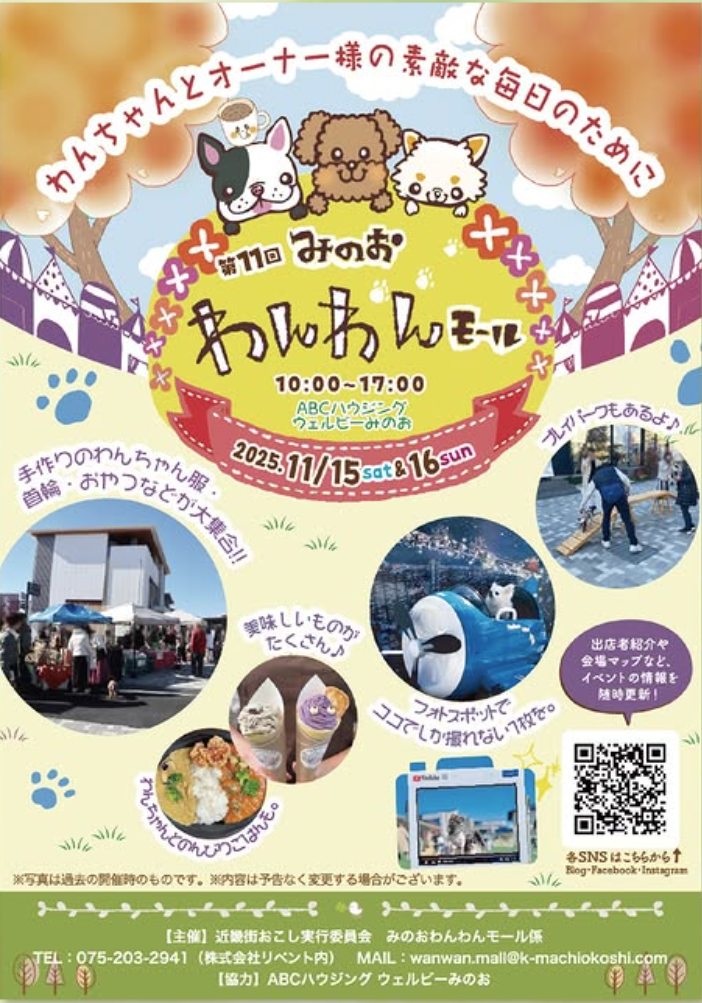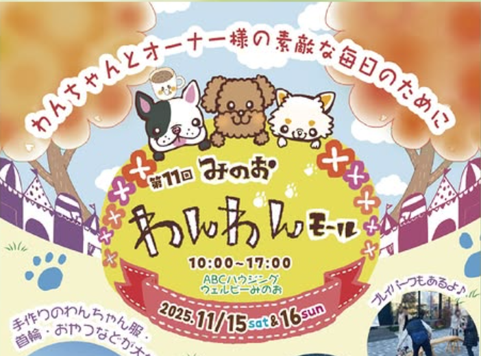 11/15(土)16(日)、ABCハウジングウェルビーみのおで、第11回みのお わんわんモールが開催されるようです!
