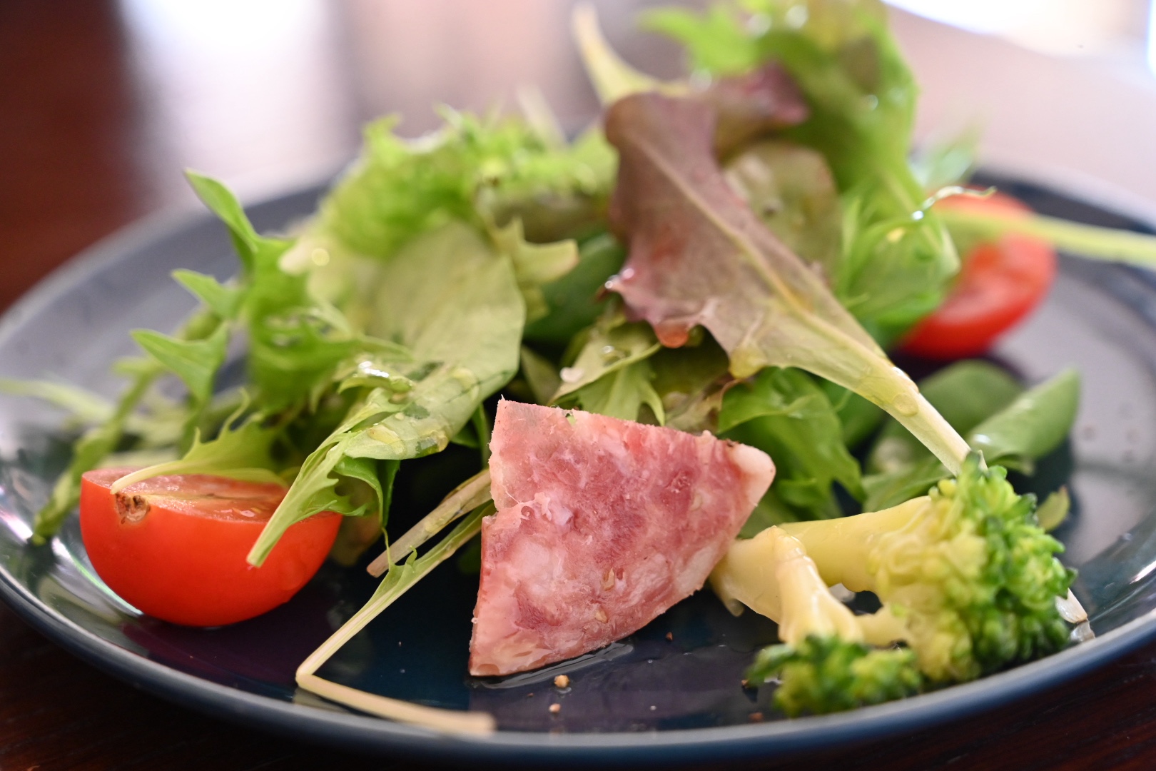 こちらはモルタデッラハムと有機野菜のサラダ。