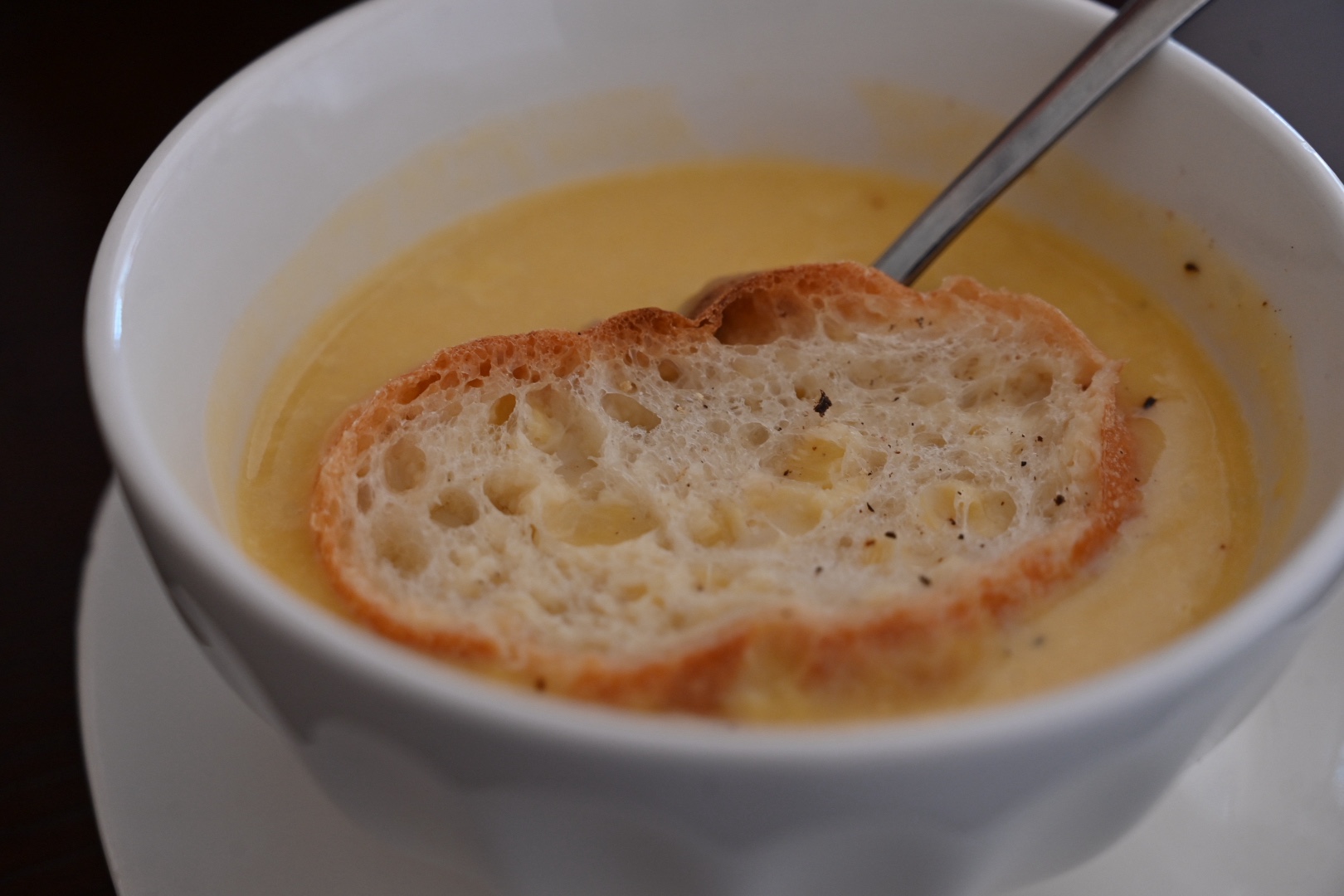 モルタデッラハムと有機野菜のサラダか南瓜のポタージュを選び、