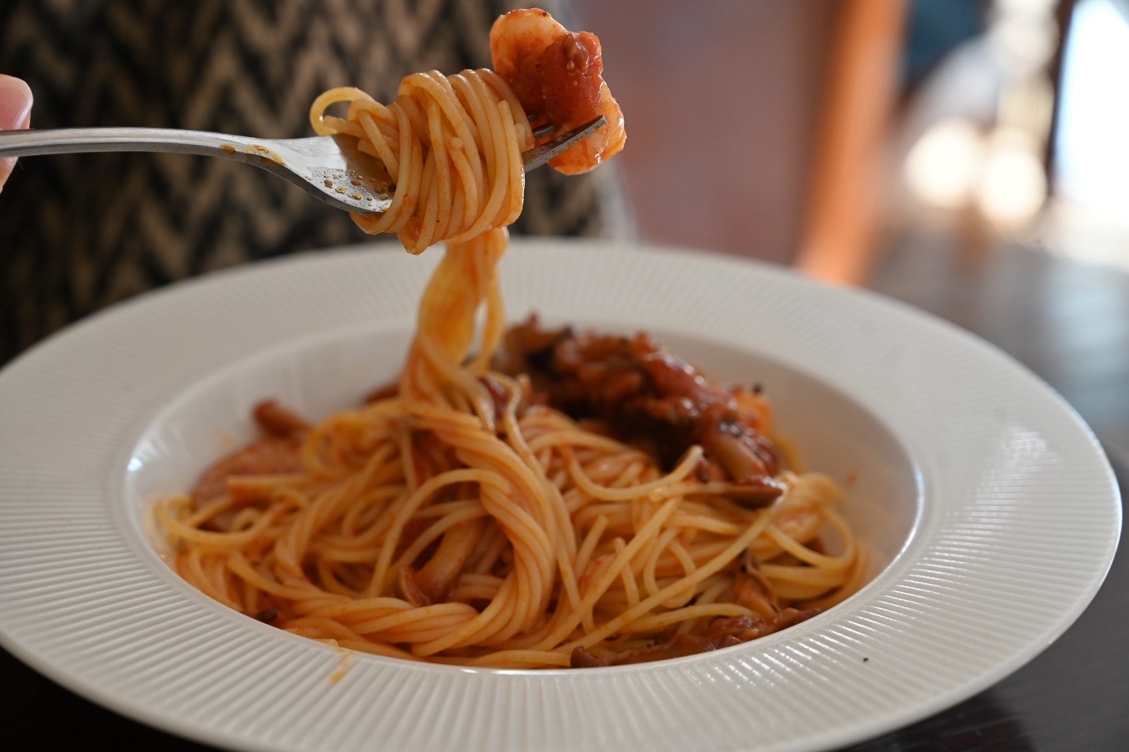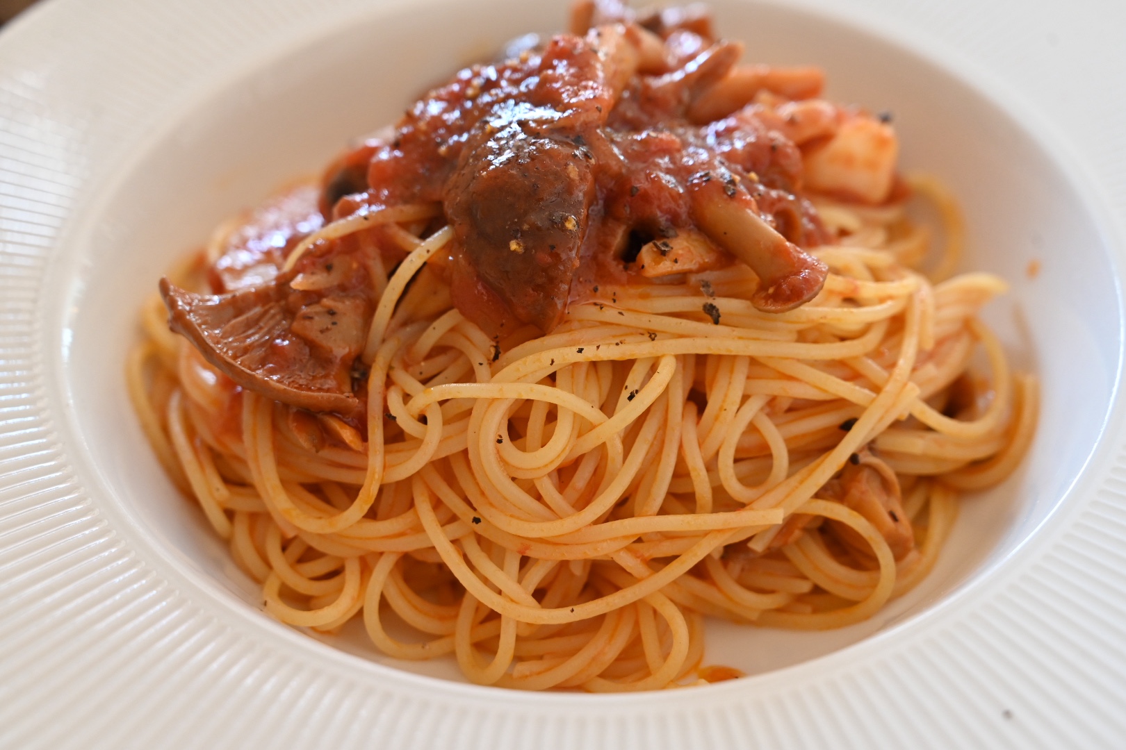 シンプルな味付けで、トマトの酸味と塩味が細いパスタにしっかり絡みます。