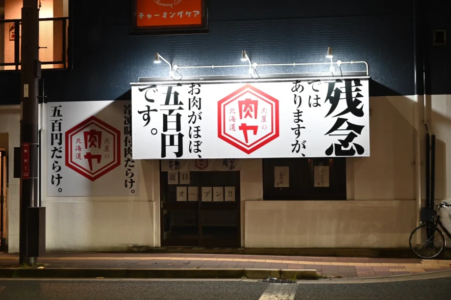 池田市新町にあった「冷凍味付け肉だらけ 500円だらけ」肉屋の肉や北海道が閉店したようです。