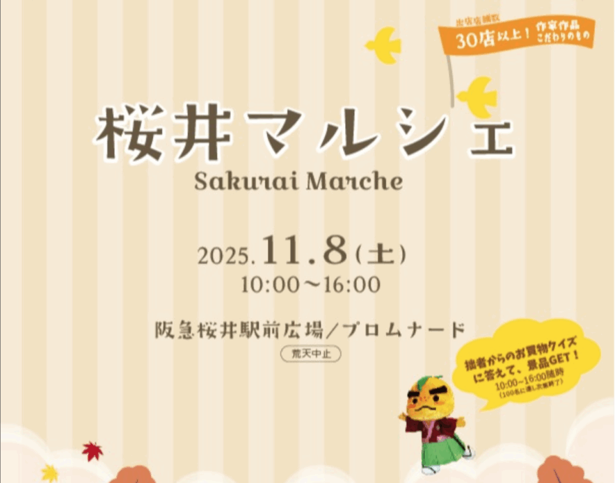 11/8(土)、桜井駅前広場・プロムナードで、桜井マルシェが開催されるようです!