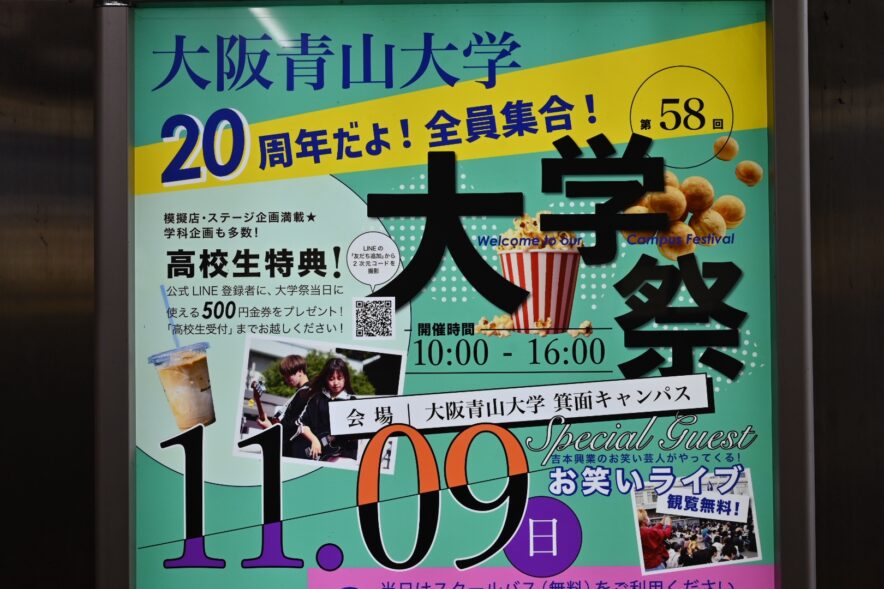 11/9(日)、大阪青山大学箕面キャンパスで、大阪青山大学20周年だよ!全員集合!第58回大学祭が開催されるようです!