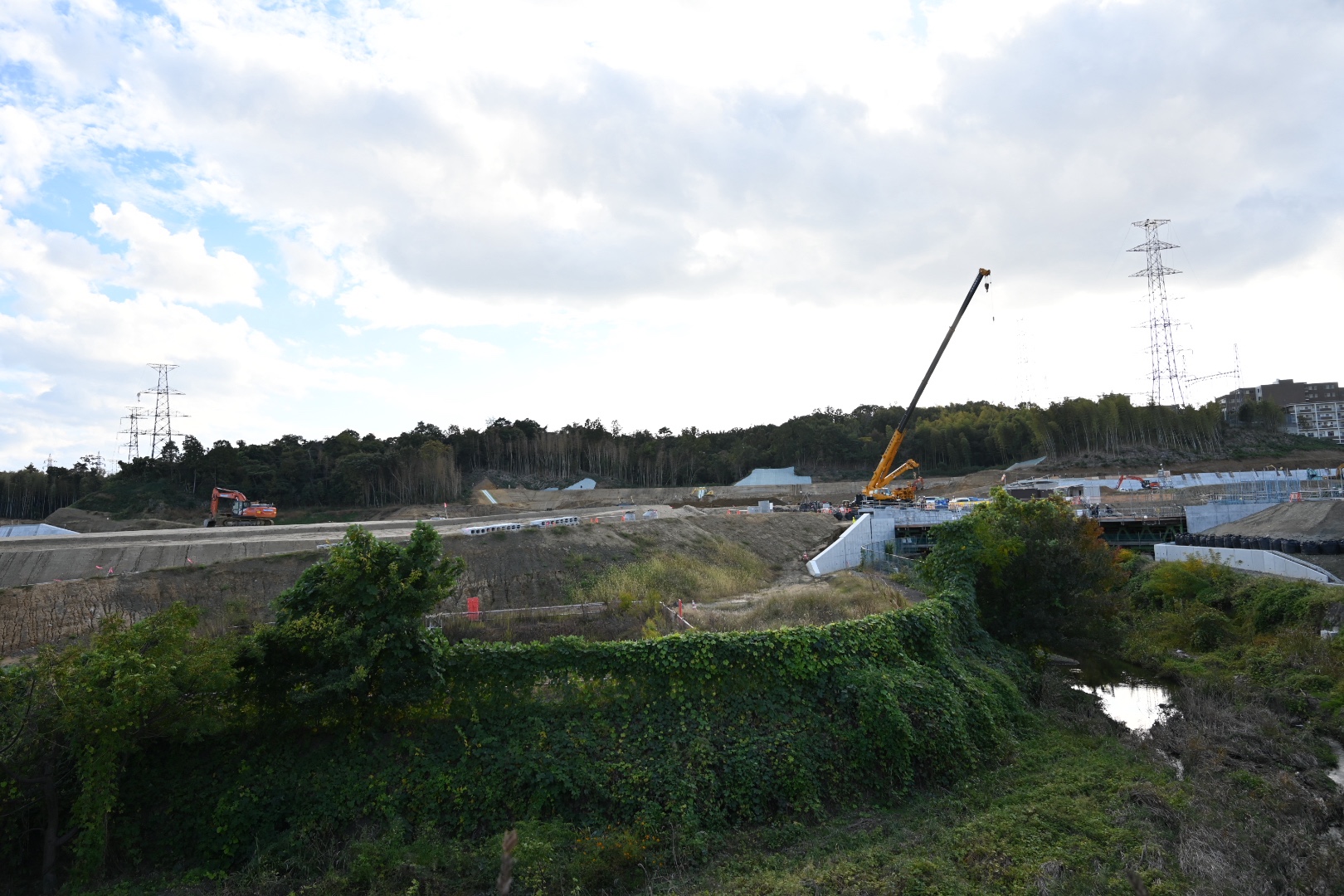 (地元の方の情報によると、東側のでっかい建物(写真右側)は「住民説明会で聞いた話ではデータセンターになる」とのことでした。情報ありがとうございます!)