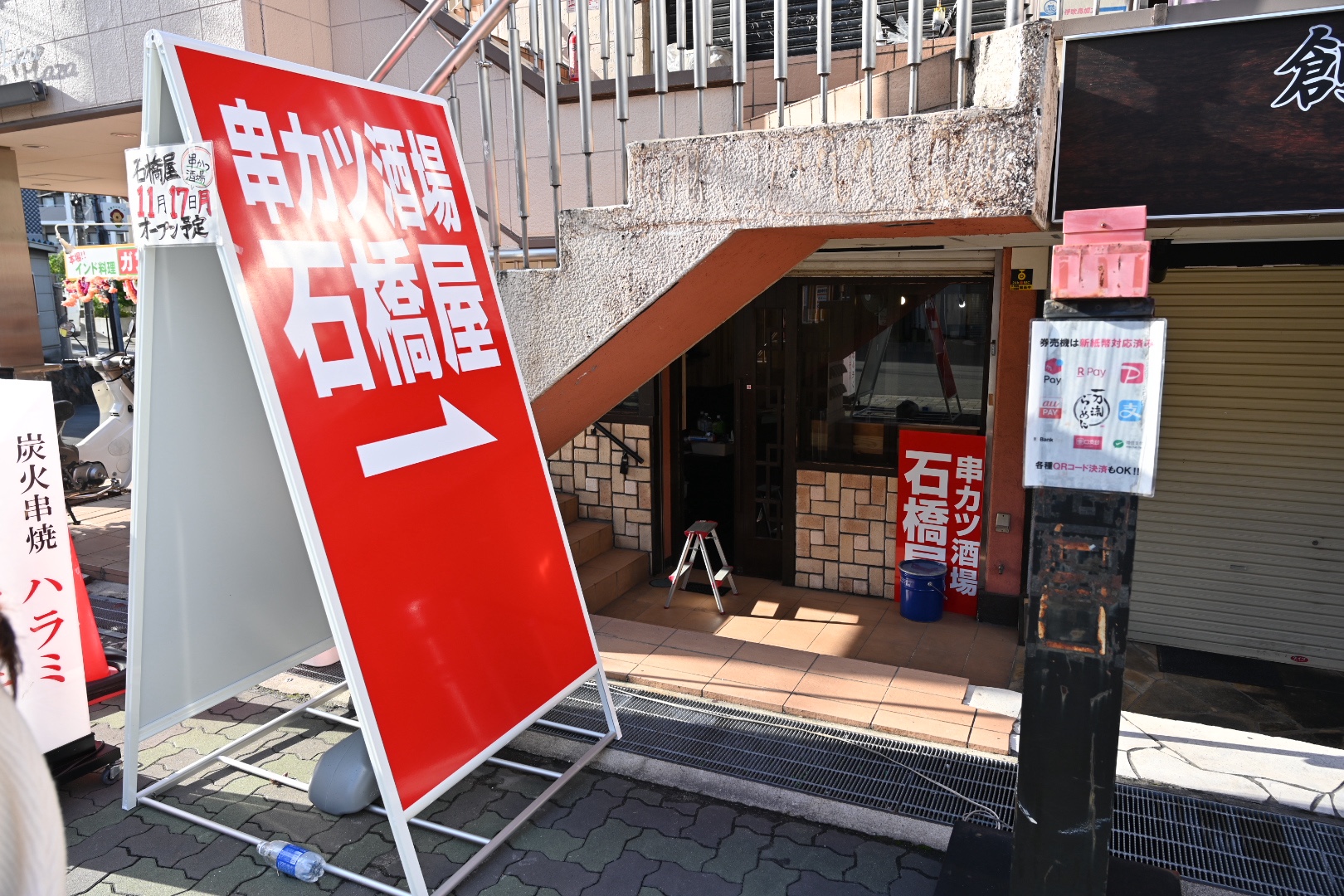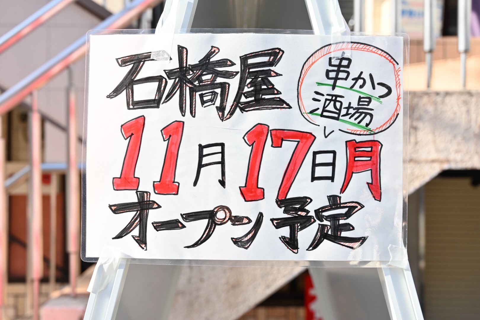 まずはここ、11月17日オープン予定の串カツ酒場石橋屋からチェック。