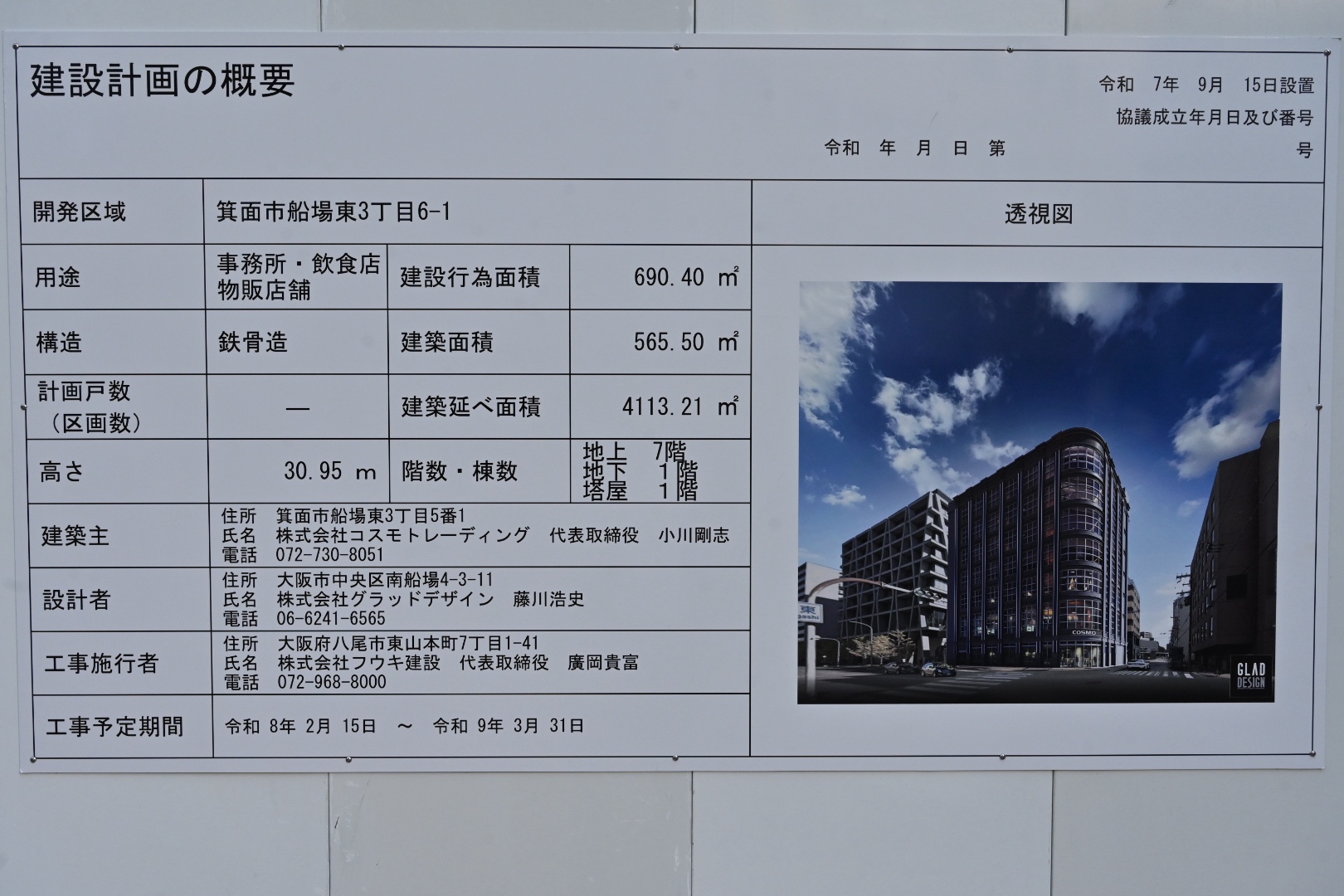 箕面市船場東の大阪大学箕面キャンパスの隣に7階建てのテナントビルができるようです!