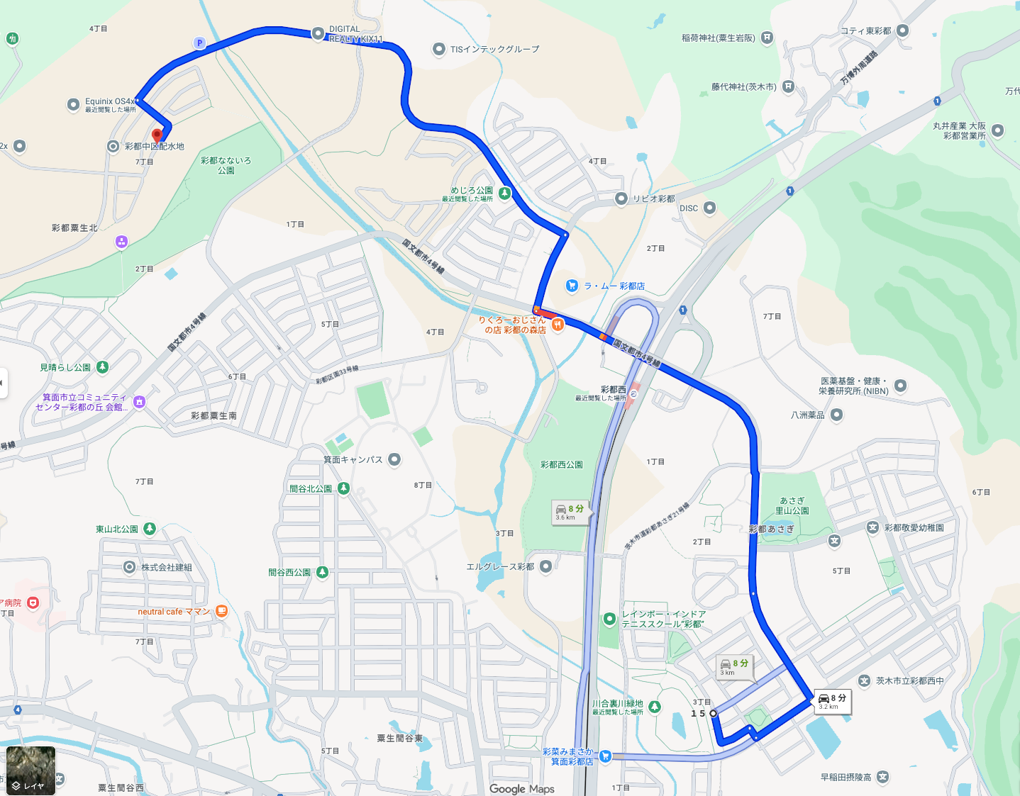 熊らしき動物の目撃現場は、彩都あさぎ3-17付近。