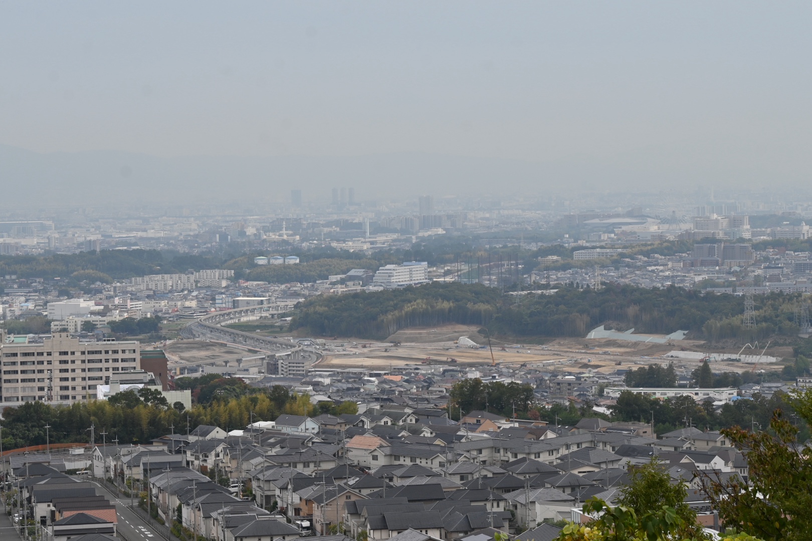 かなりの高さで、大阪平野が一望できる見事な眺望です。
