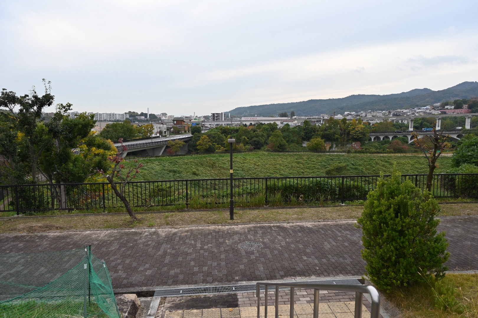 目の前には川合裏川緑地が広がり、緑豊かな場所ではありますが、モノレール彩都線が走り、人の往来も多い場所です。