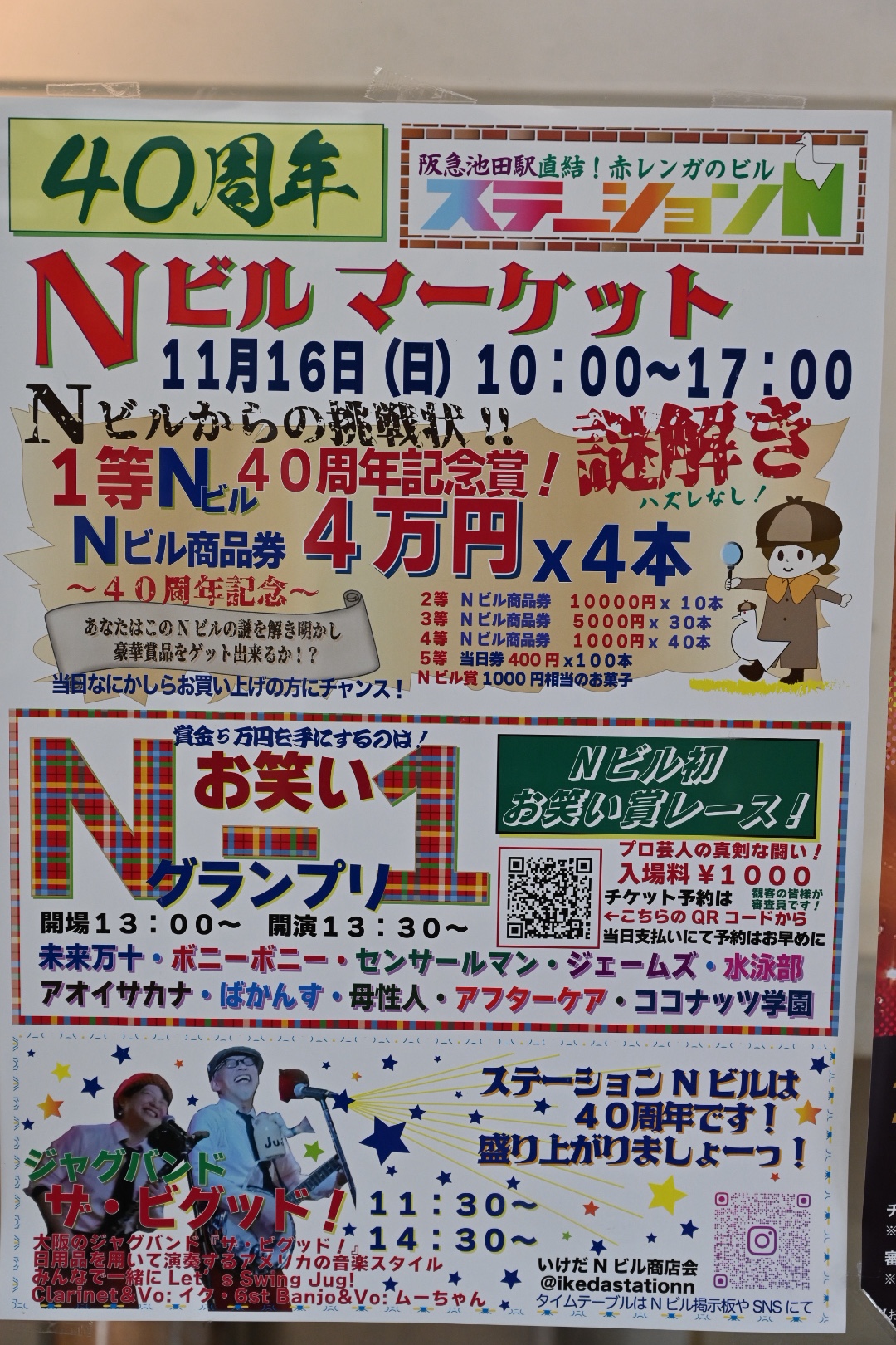 ステーションNが40周年という事で企画されたイベントで、ハズレなしの謎とき、40店舗が出店するNビルマーケット、賞金5万円をかけて芸人達が争うN-1グランプリ、そしてジャグバンド ザ・ビグッド!の演奏など、たくさんの企画で40周年を盛り上げます。