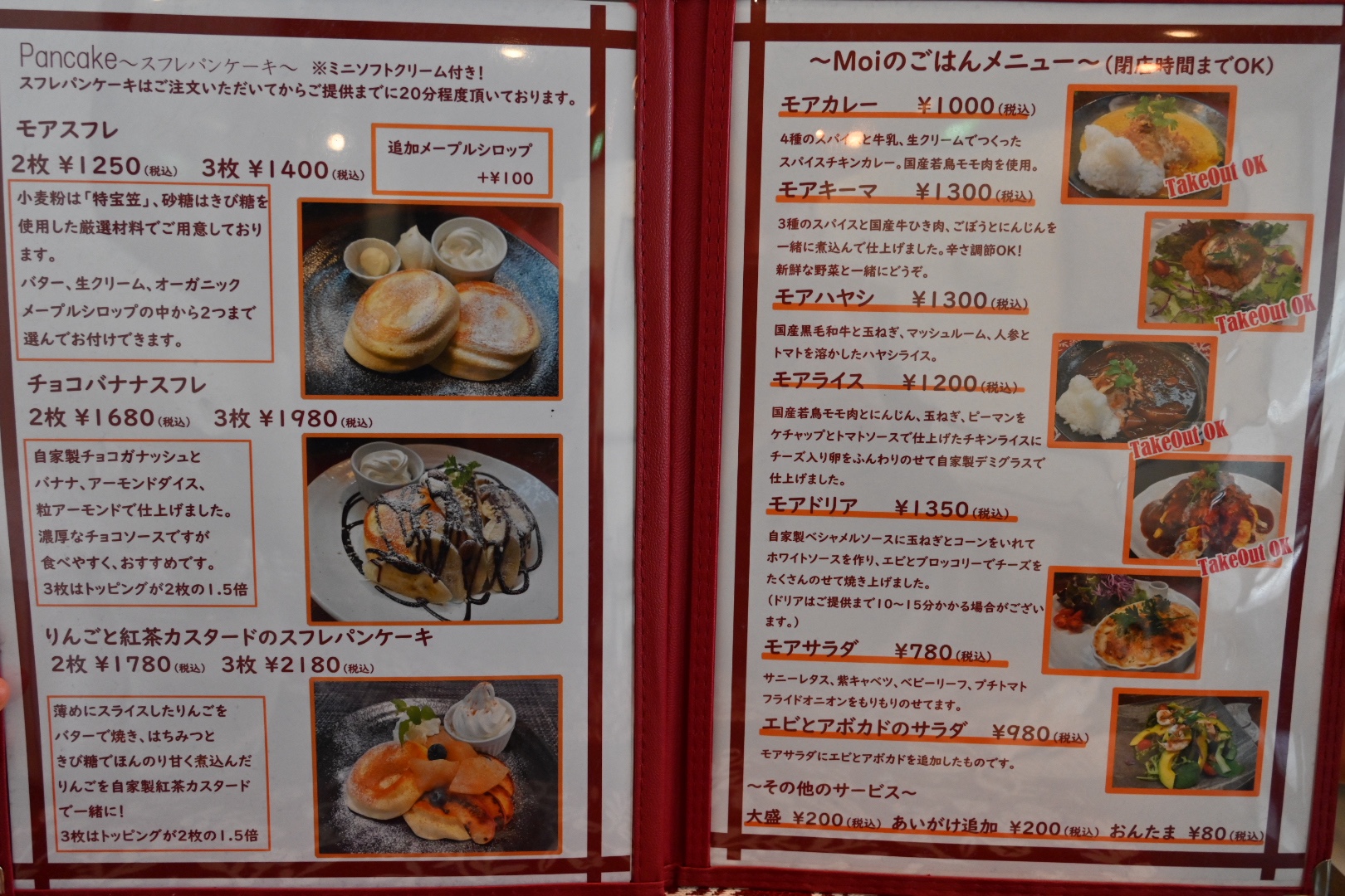 今回はランチタイムなので、⬆︎のメニューから、モアライス(¥1200)とモアドリア(¥1350)を注文。