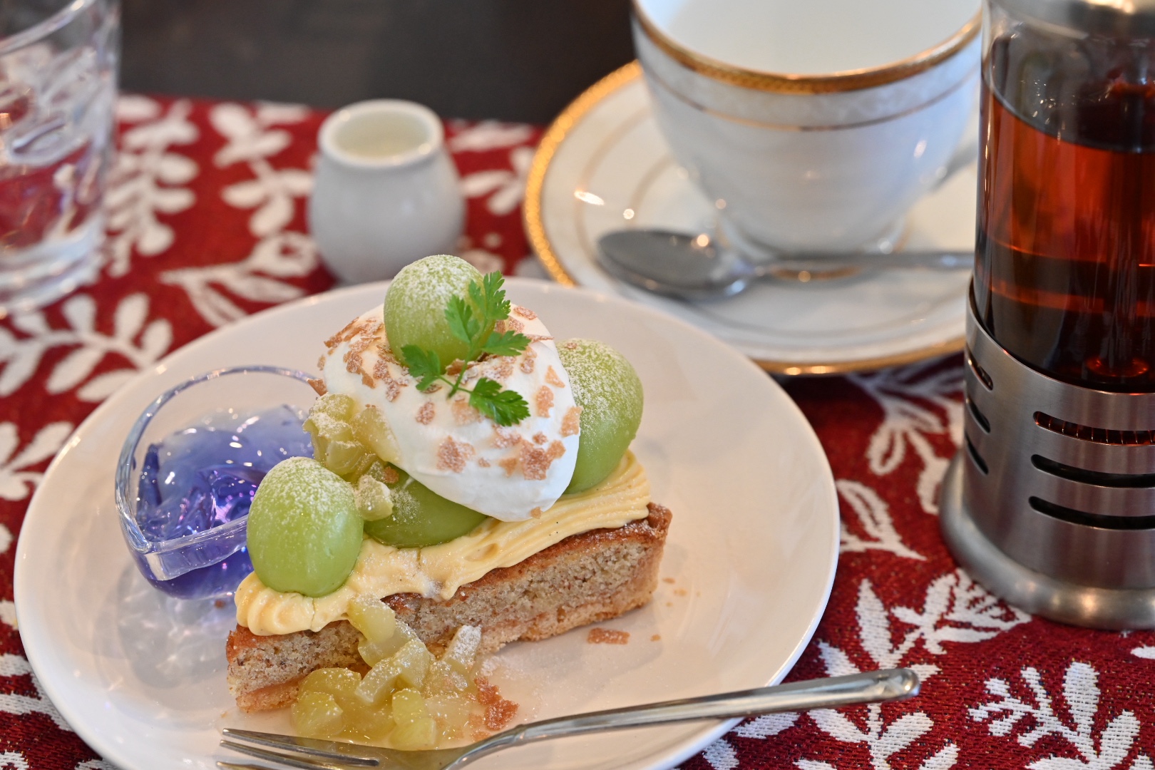 マスカットタルト(¥980)、モンブランタルト(¥980)、アッサムティー(¥730)、デカフェ アッサムティー(¥730)を注文。