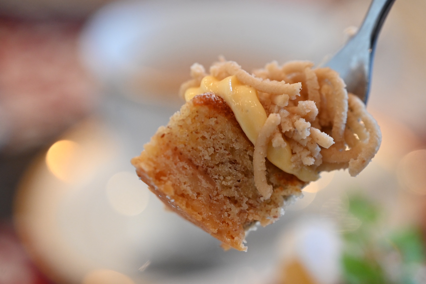 生地はちょっと硬めで、フォークで切断する時は結構パワーがいります。