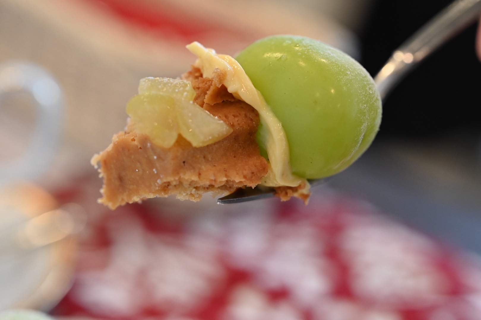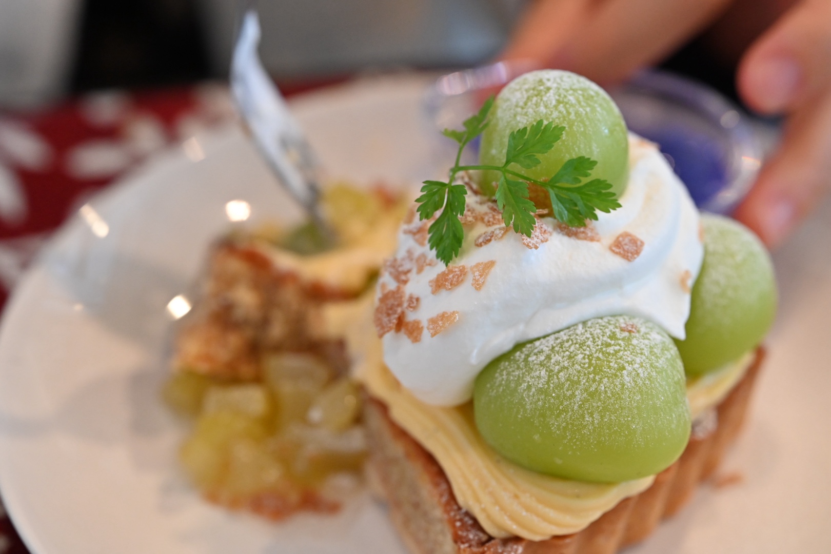 サクサク生地とマスカットのシャキ!っとした食感が楽しめ、爽やかな甘みが特徴。