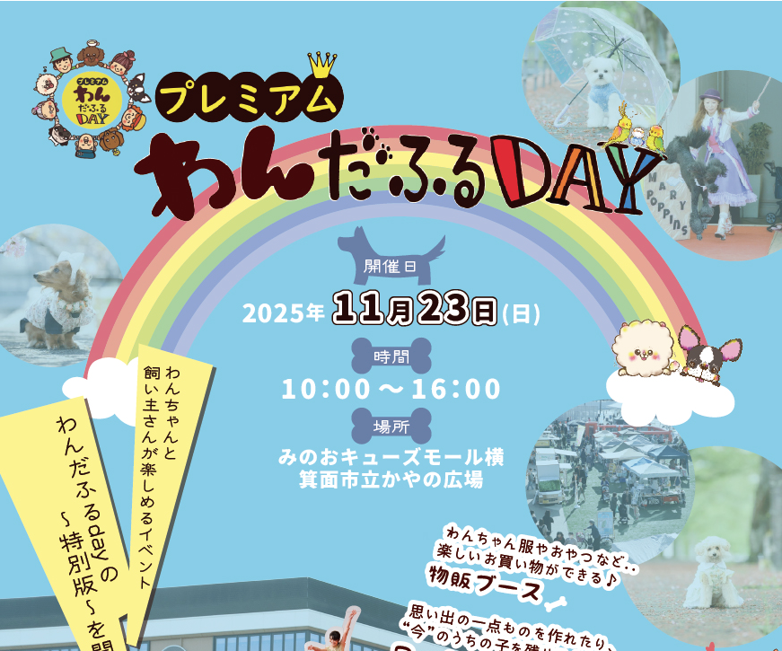 11/23(日)、みのおキューズモールでプレミアムわんだふるDAYが開催されるようです!