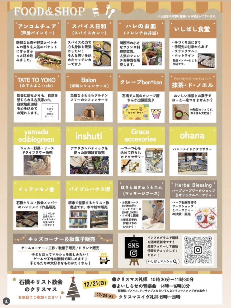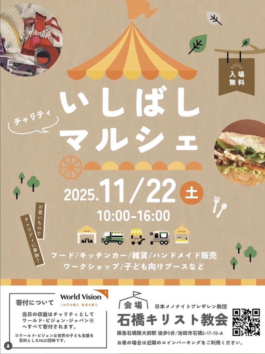11/22(土)、石橋キリスト教会で、いしばしマルシェが開催されるようです!