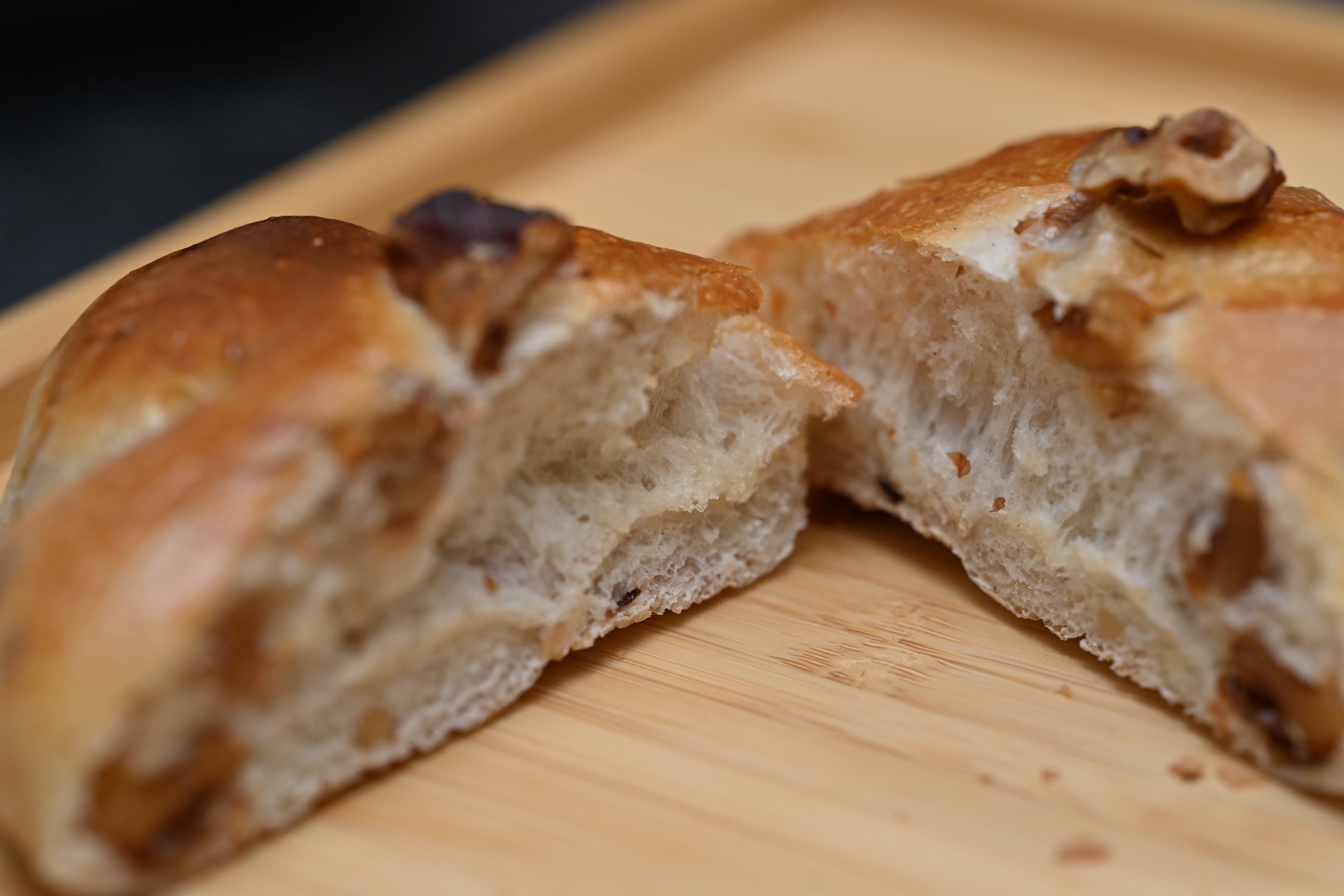 少しだけ歯応えのある生地で、コリコリしたクルミに歯が当たるのが心地よい。