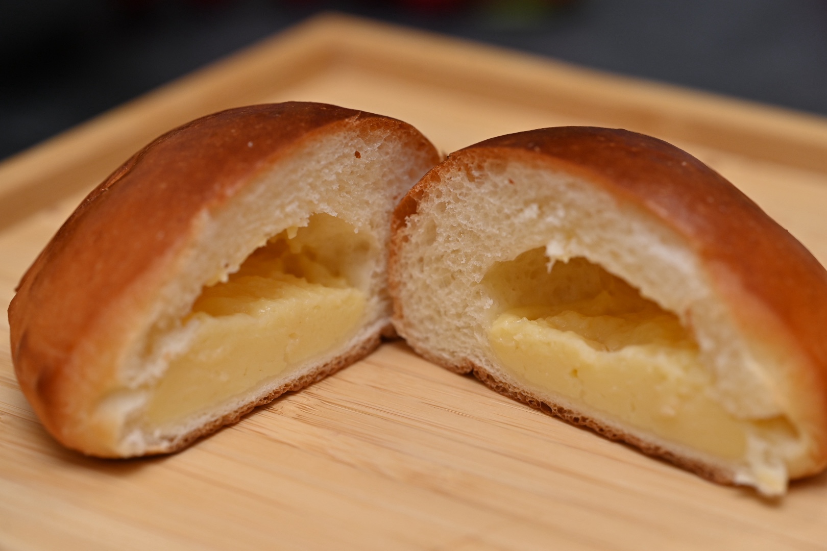 あま〜いカスタードは少し舌にザラついた感触を残し、パンとの相性がよく食べやすい。