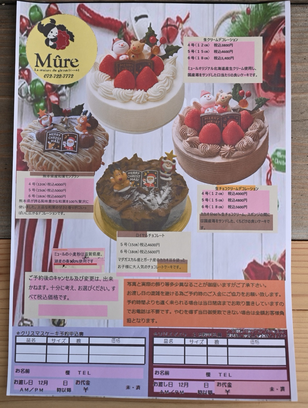 先日は池田市のクリスマスケーキの買えるお店情報をお届けしましたが、その箕面版をお届けします!