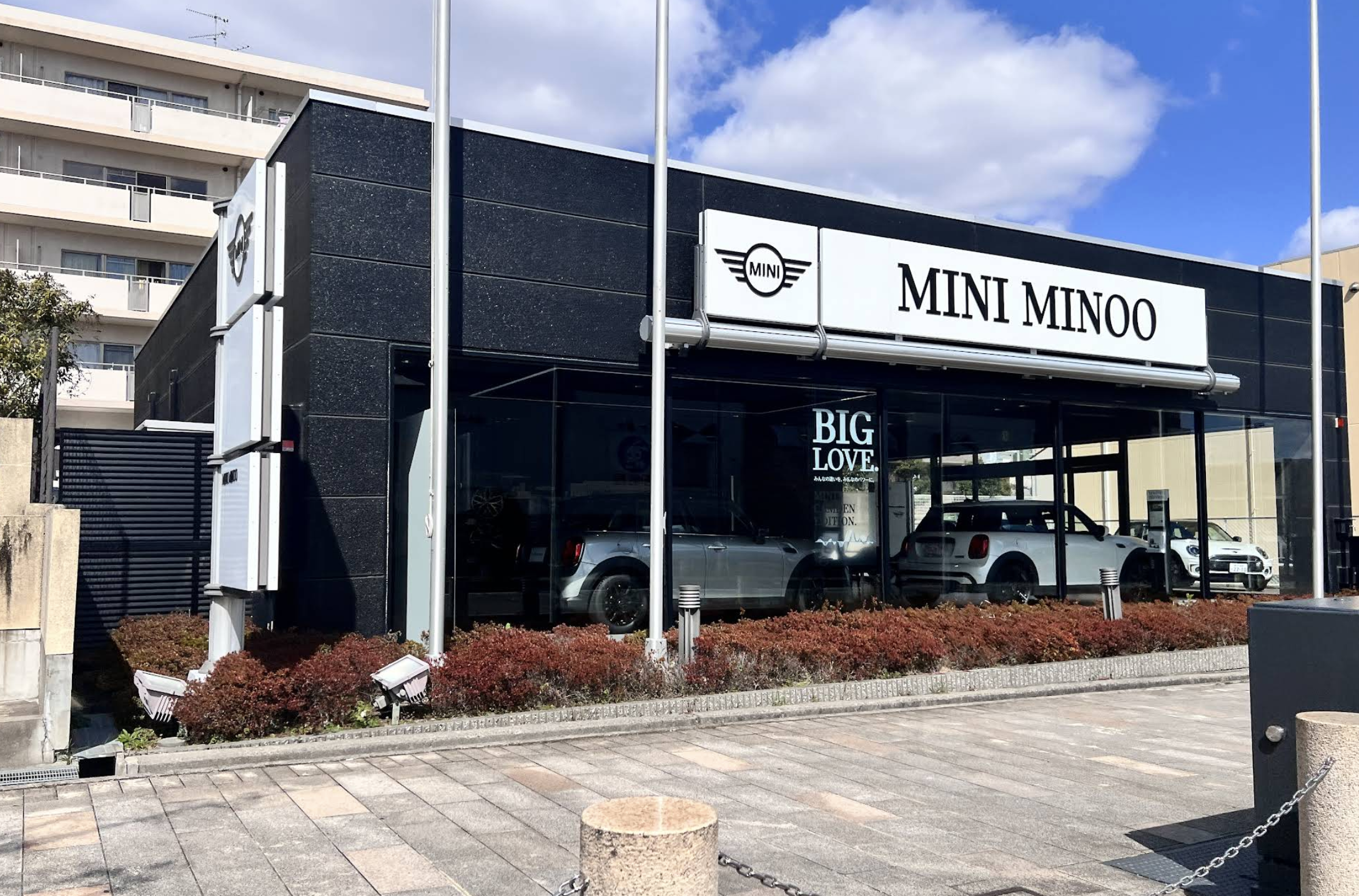 箕面市内のBMW MINIというと、みのおキューズモールの前にありますね。