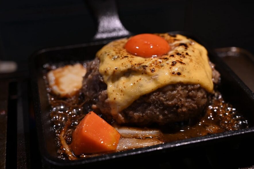そしてジュワ〜ッ!と鉄板で焼き上がる音とお肉の焼ける匂いを伴ってハンバーグが登場。