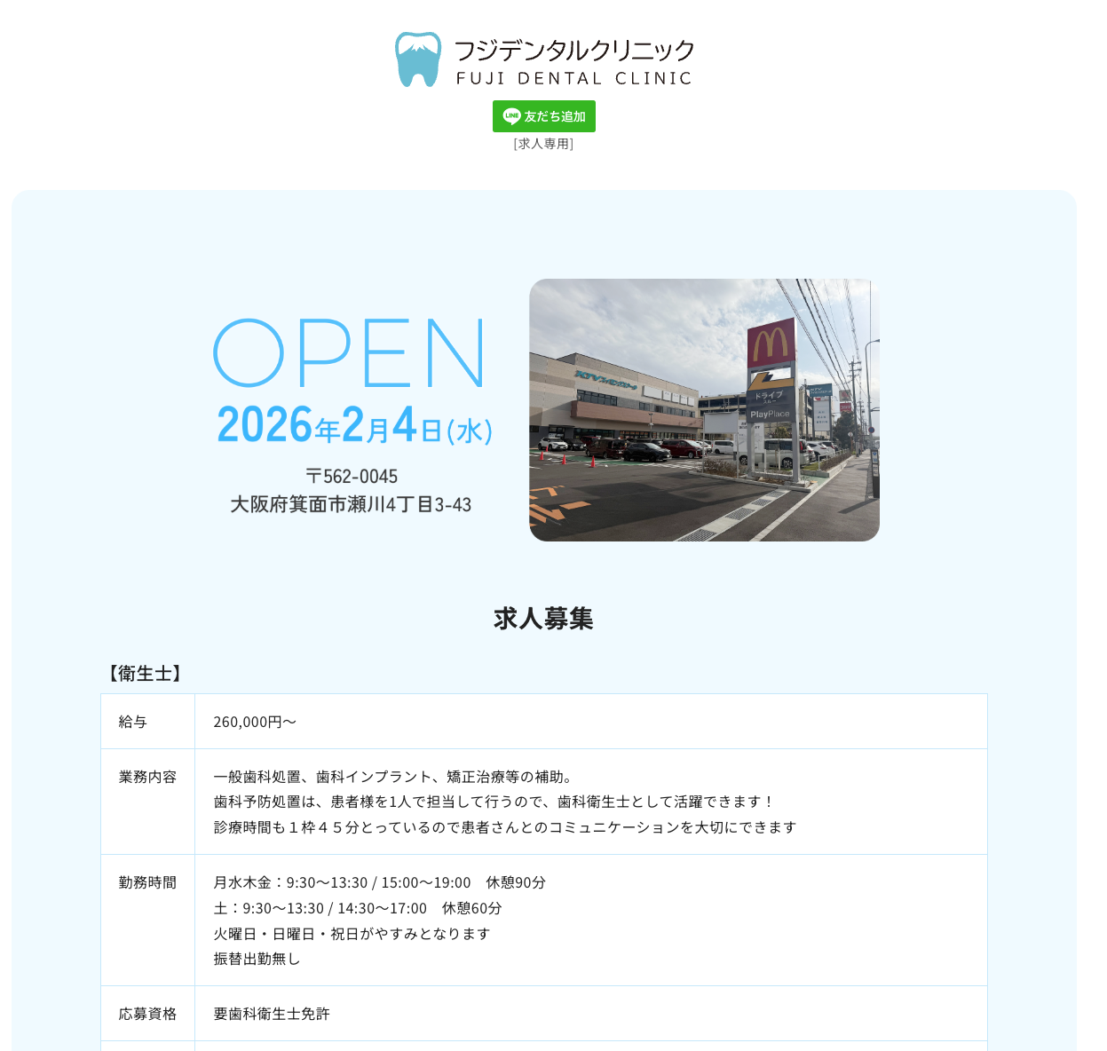 2026年2月4日、箕面市瀬川のKTVスイミングスクールのあるビル2階にフジデンタルクリニックがオープンするみたい。