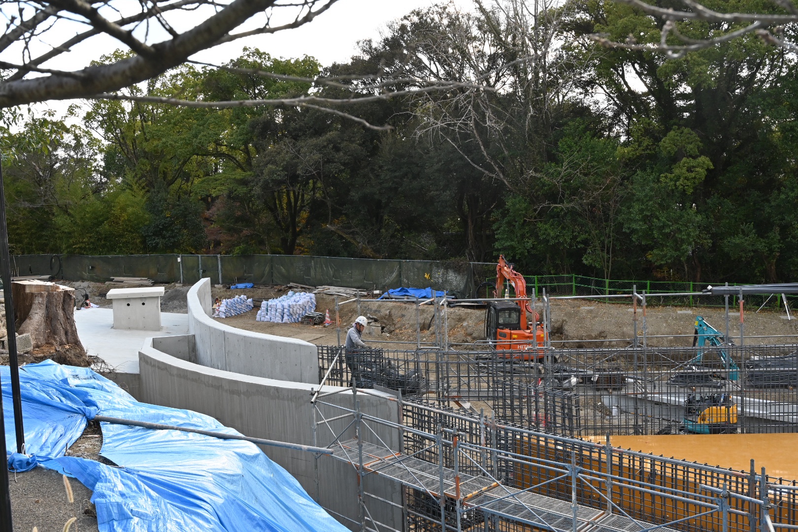 動物を見て満足したので、工事の様子を見に行きます。
